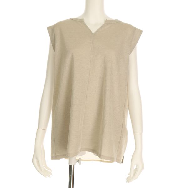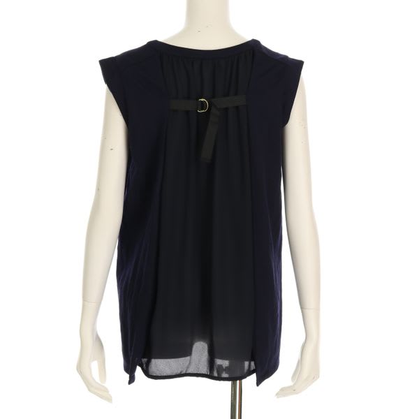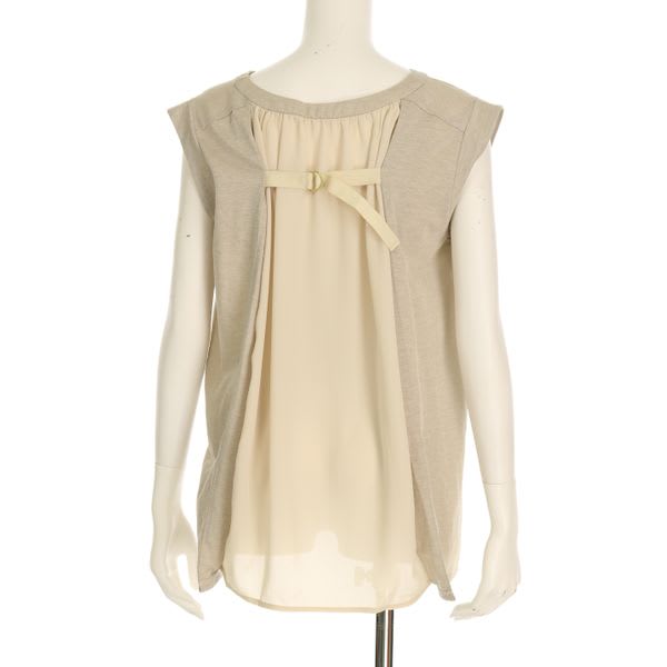 異素材切り替えのカットソー。バックのベルトがアクセントになっています♪ワイドパンツと合わせて、こなれ感のあるスタイルに!また、タイトスカートと合わせてレディライクなスタイルも素敵ですよ。
