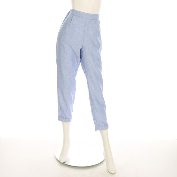 裾のデザインがポイントのテーパードパンツ。スキッパーシャツとスニーカーを合わせて軽やかな印象に、ハイゲージニットとヒールパンプスを合わせて、キレイめカジュアルに着こなしても◎ですよ♪