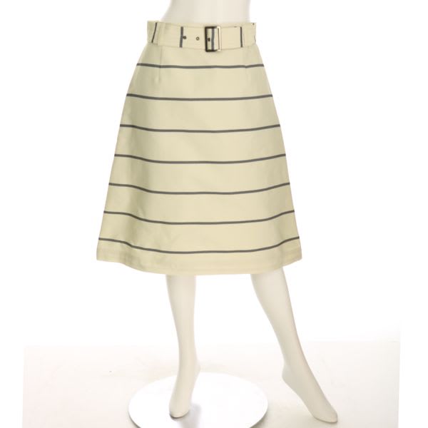 ボーダー柄のベルト付きスカート。とろみ感のあるブラウスを合わせて綺麗めカジュアルスタイルに、デニムシャツを合わせてマリンテイストに着こなすのもいいですね!