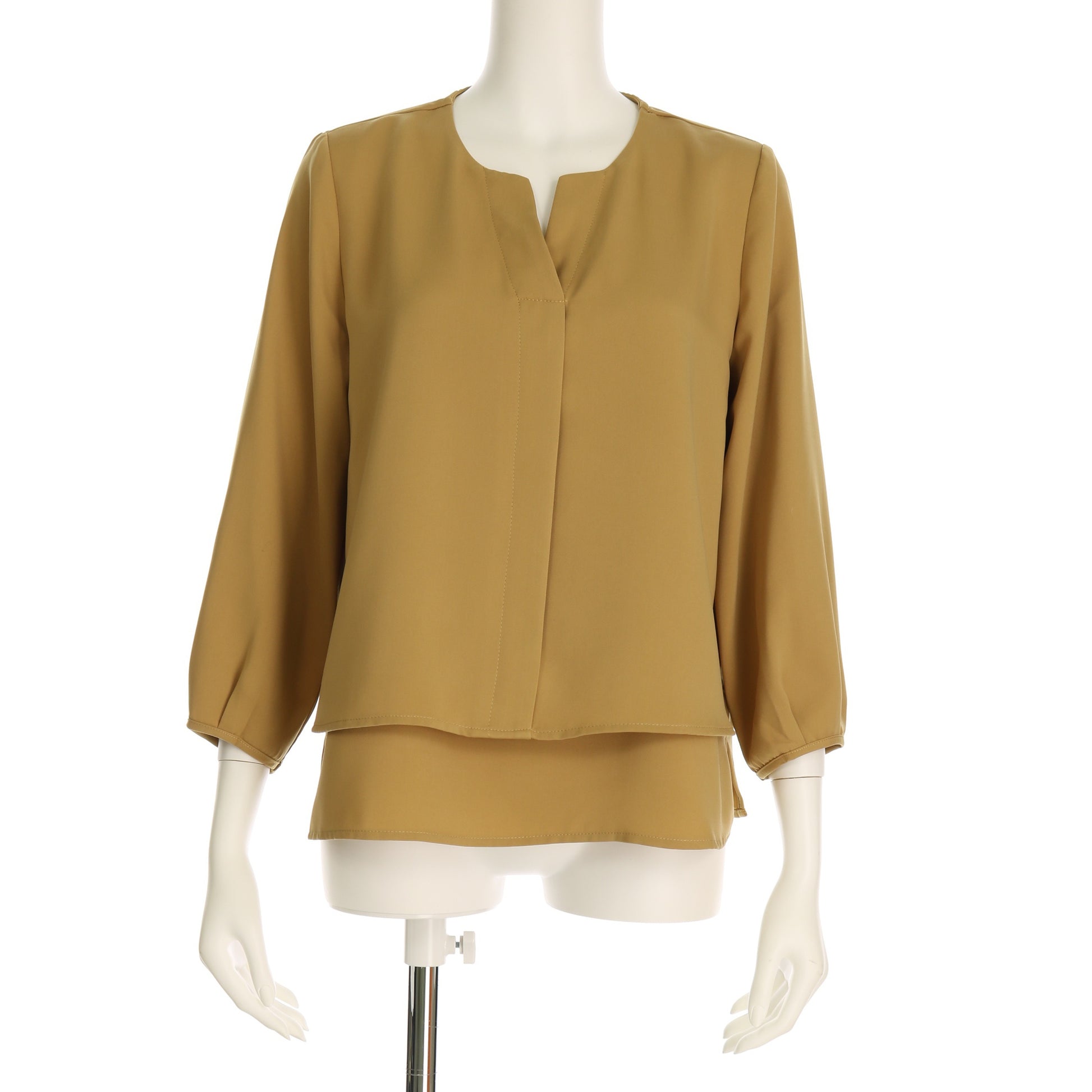 フロントにレイヤード風のデザインが施されたブラウス。タイトスカートを合わせてオフィスカジュアルに、テーパードパンツを合わせてお出かけにもいいですね!