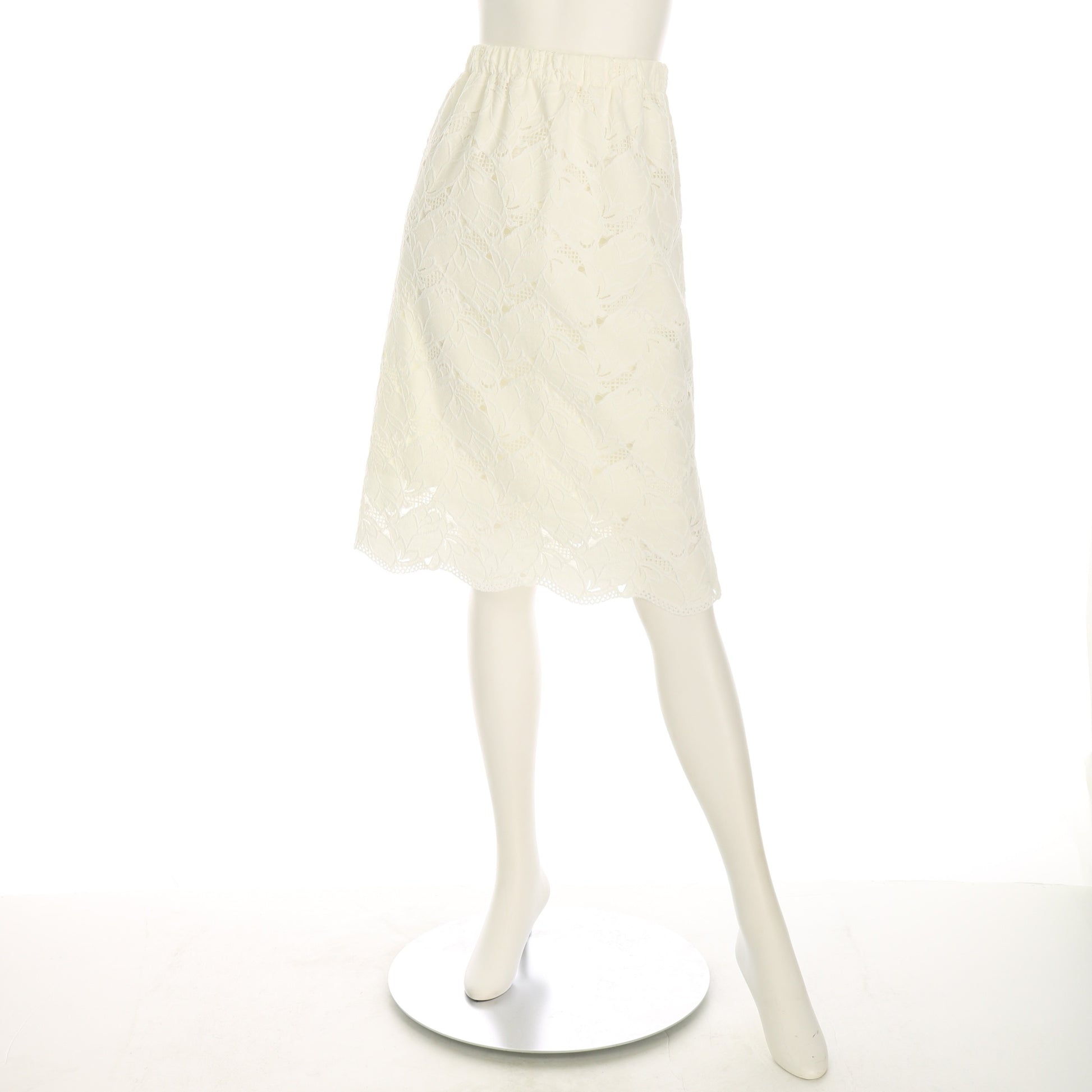ウエストゴムの総レーススカート。とろみブラウスを合わせてオフィスカジュアルに、リブカットソーを合わせてスマートな着こなしもいいですね!