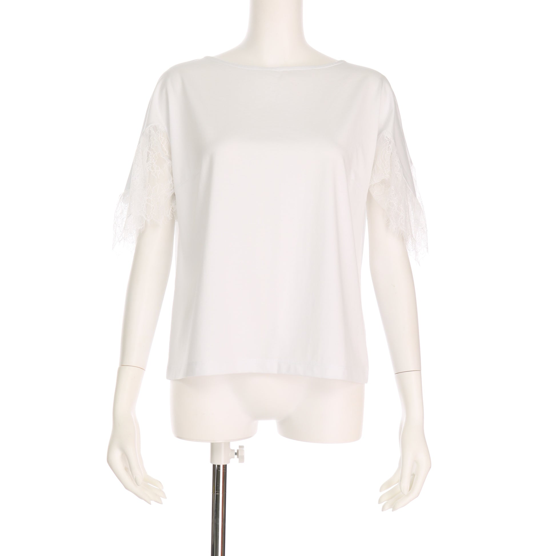 袖のレース切り替えがポイントのブラウス。タイトスカートを合わせて上品な着こなしに、テーパードパンツを合わせて綺麗目カジュアルスタイルもいいですね。