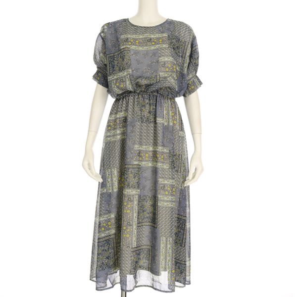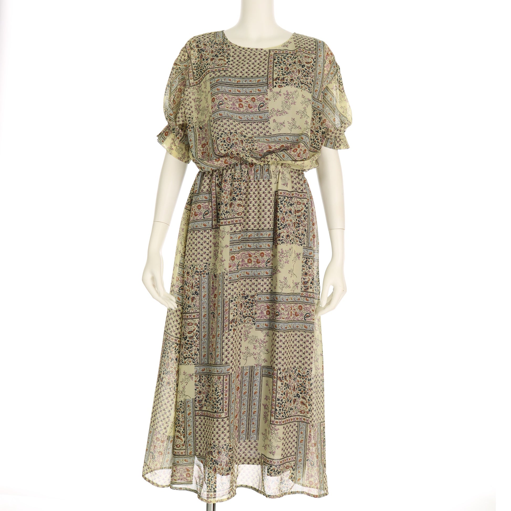 重なりあった柄がポイントのワンピース。足元はバレエシューズを合わせてキレイめな印象をプラスしたり、エスパドリーユを合わせてカジュアルに決めるのも◎。