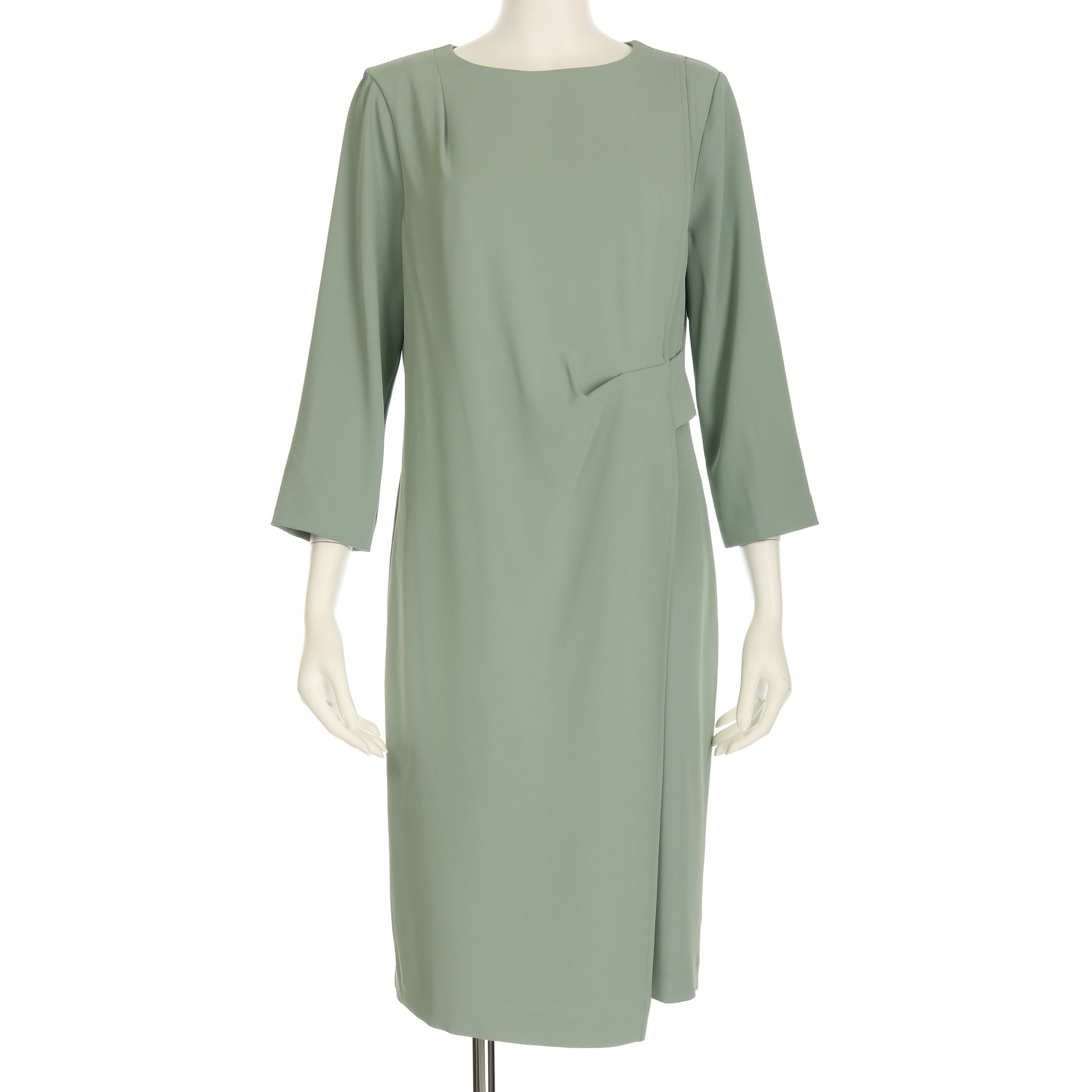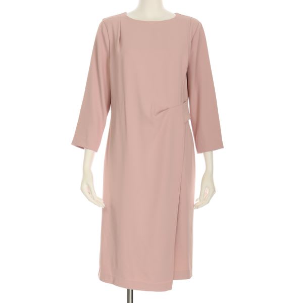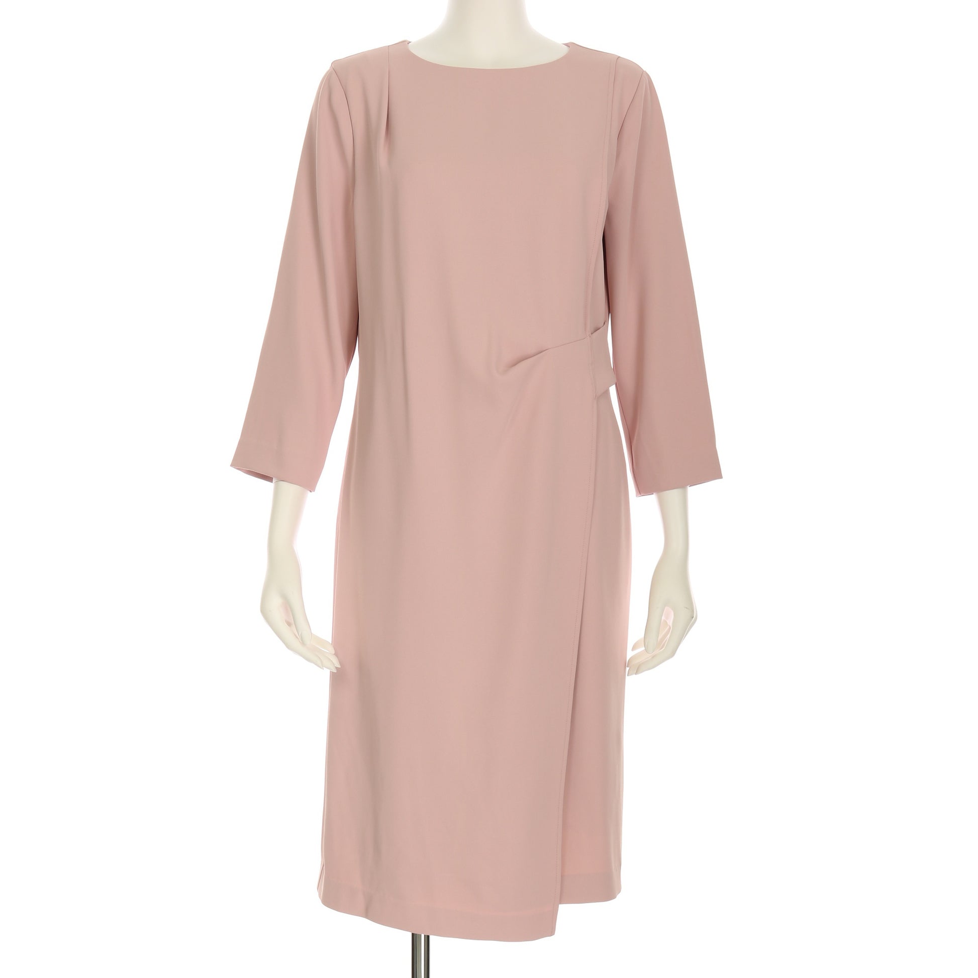 スカート部分のラップ風デザインがポイントのワンピースです。パールのアクセサリーを付けて上品なスタイルに、大ぶりのアクセサリーで華やかなスタイルも素敵ですね♬