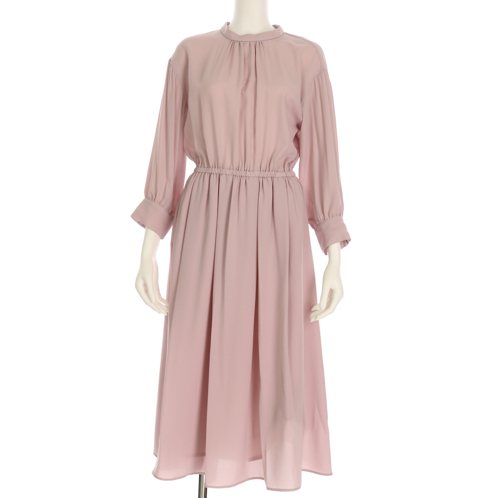 スタンドカラーのワンピース。ヒールパンプスを合わせて綺麗目カジュアルの着こなしや、バレエシューズを合わせてお出かけスタイルも素敵ですよ。
