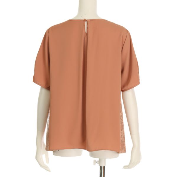 サイドのレースがポイントのオープンフロントネックブラウス。フレアスカートを合わせて女性らしいスタイルに、スキニーパンツを合わせてカジュアル感をプラスするのも◎。