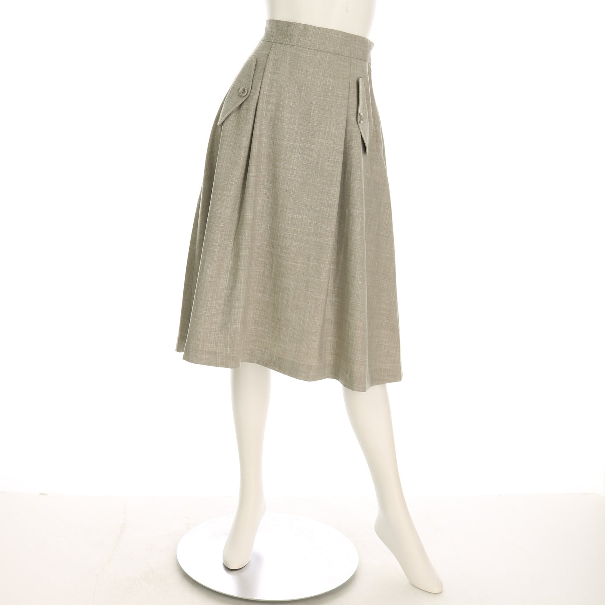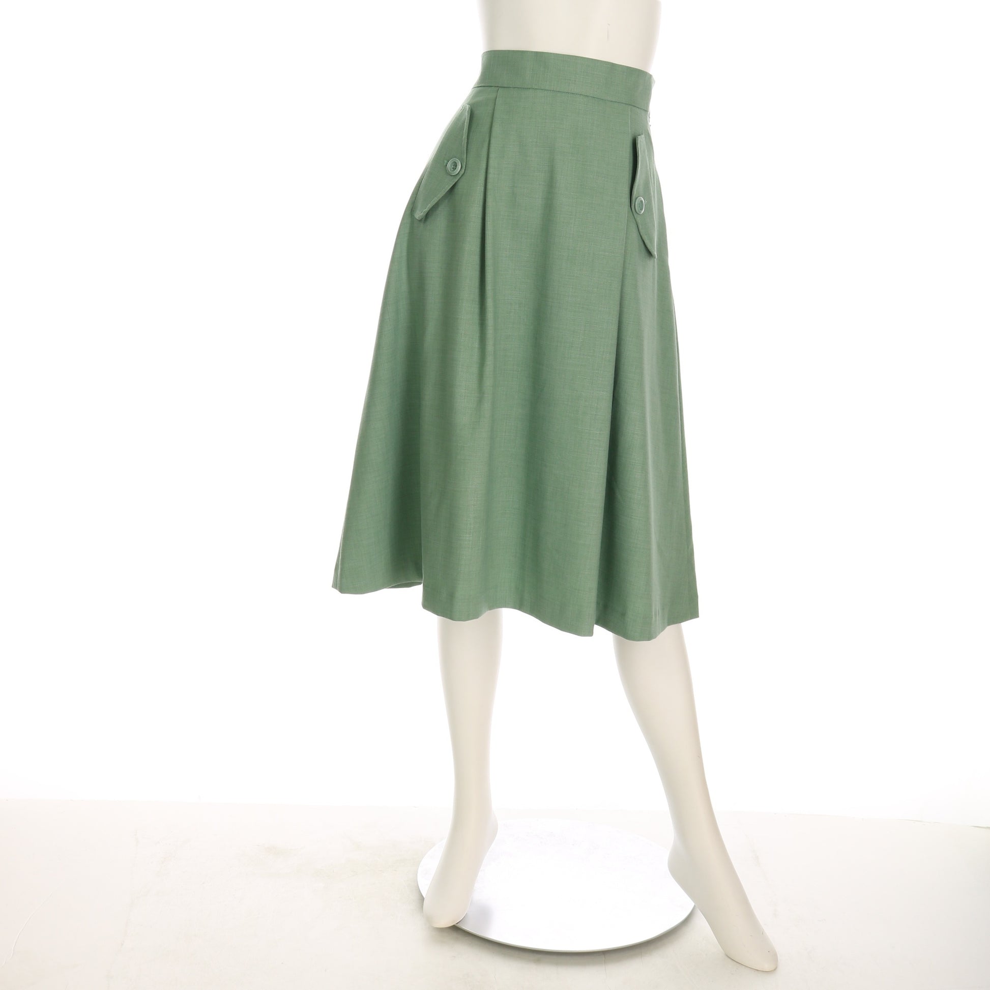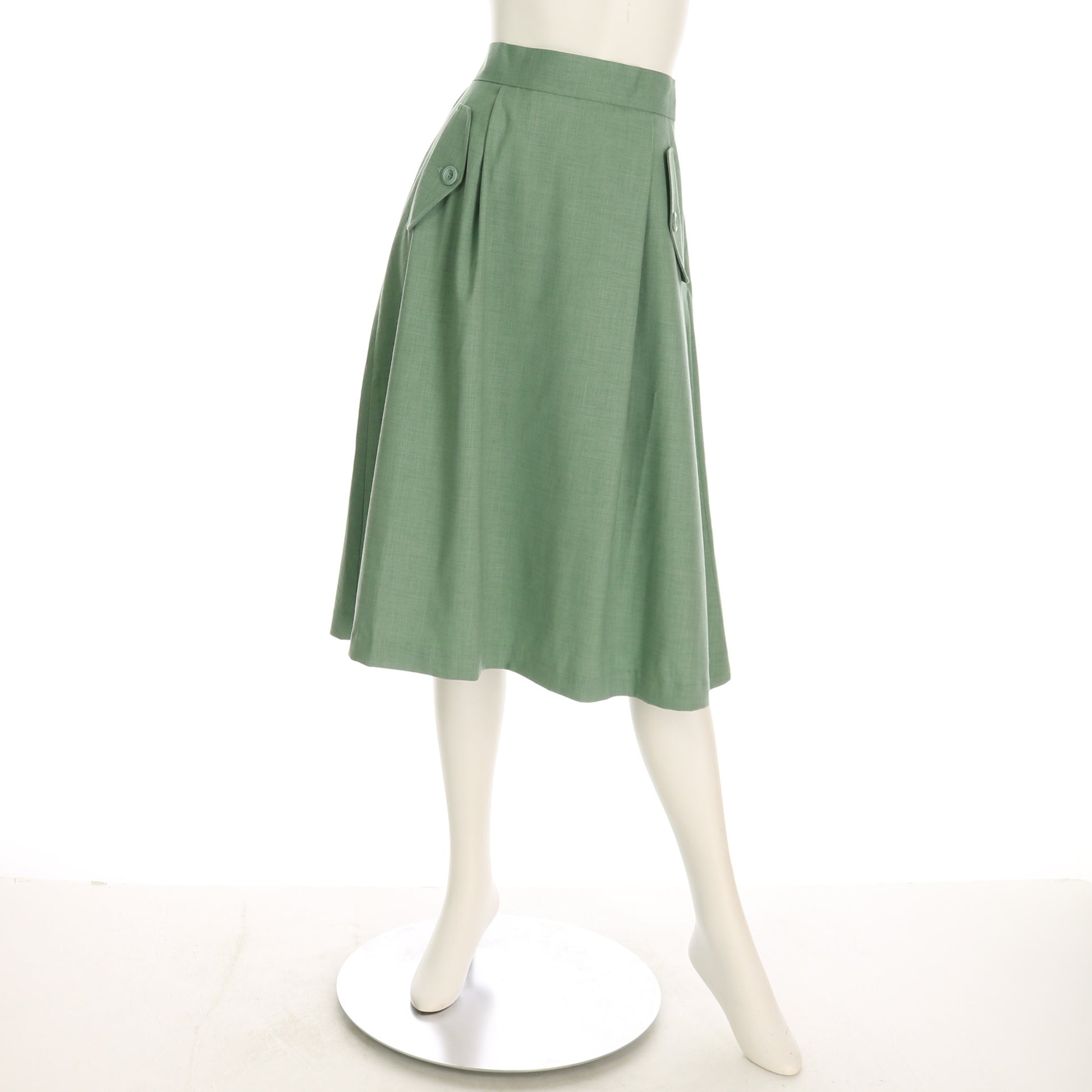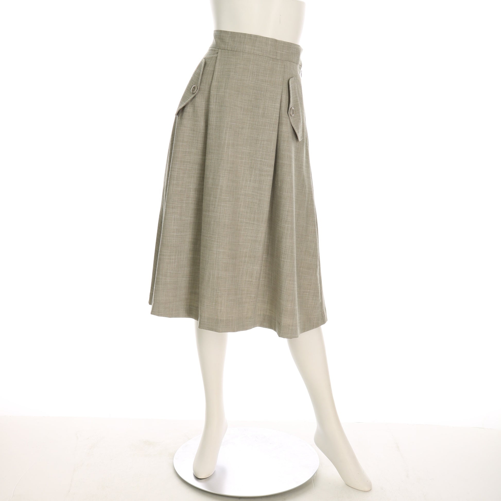 フェイクポケットのフラップ付きデザインのフレアスカート。フレア袖のブラウスとヒールパンプスを合わせて女性らしく着こなしたり、スキッパーシャツとスニーカーを合わせてカジュアルに着こなすのも◎ですよ。