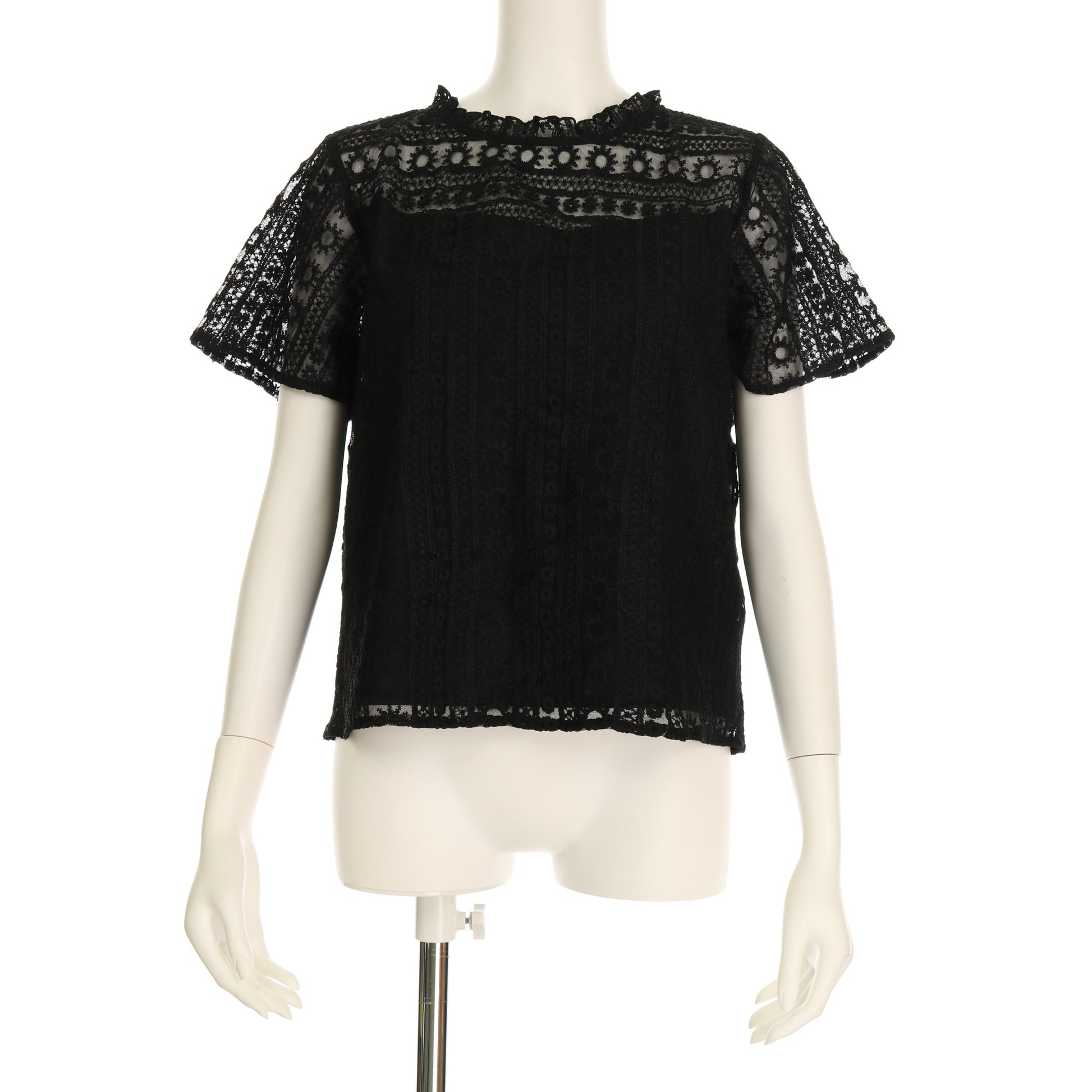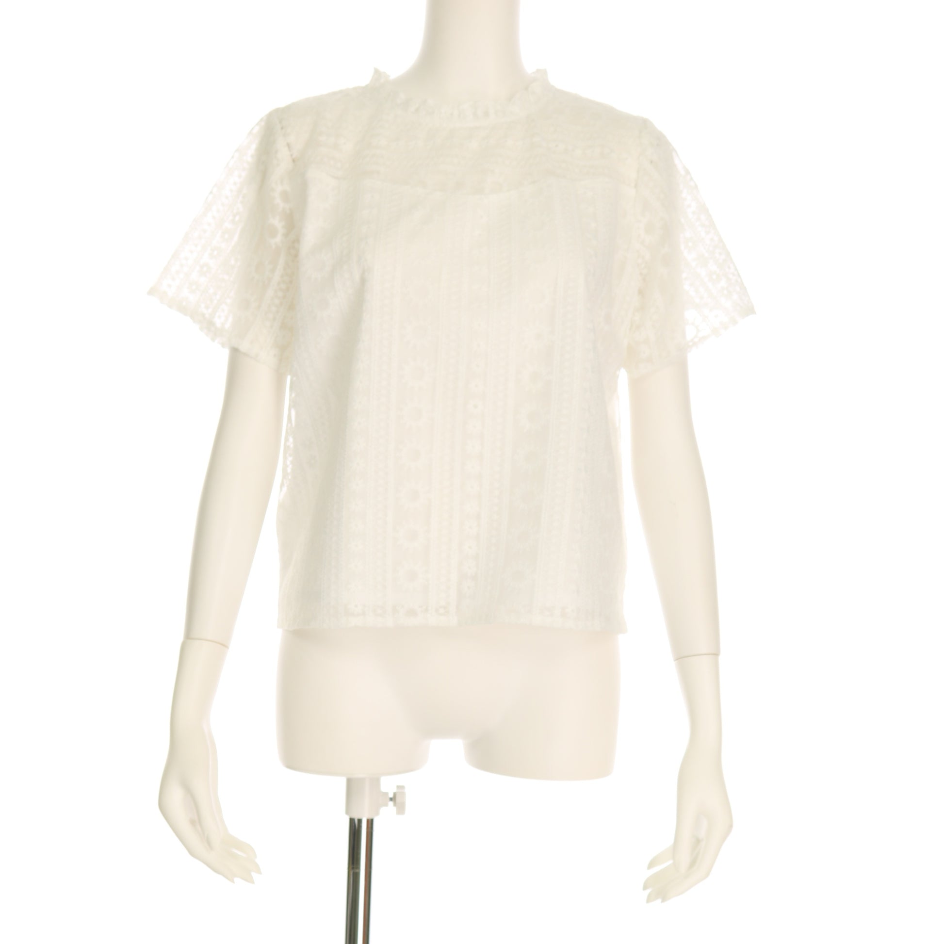 透け感のある総レースのブラウス。襟元のフリルが女性らしいですね♪タイトスカートと合わせてレディライクに、デニムパンツと合わせてカジュアルに着こなしてもステキですよ!