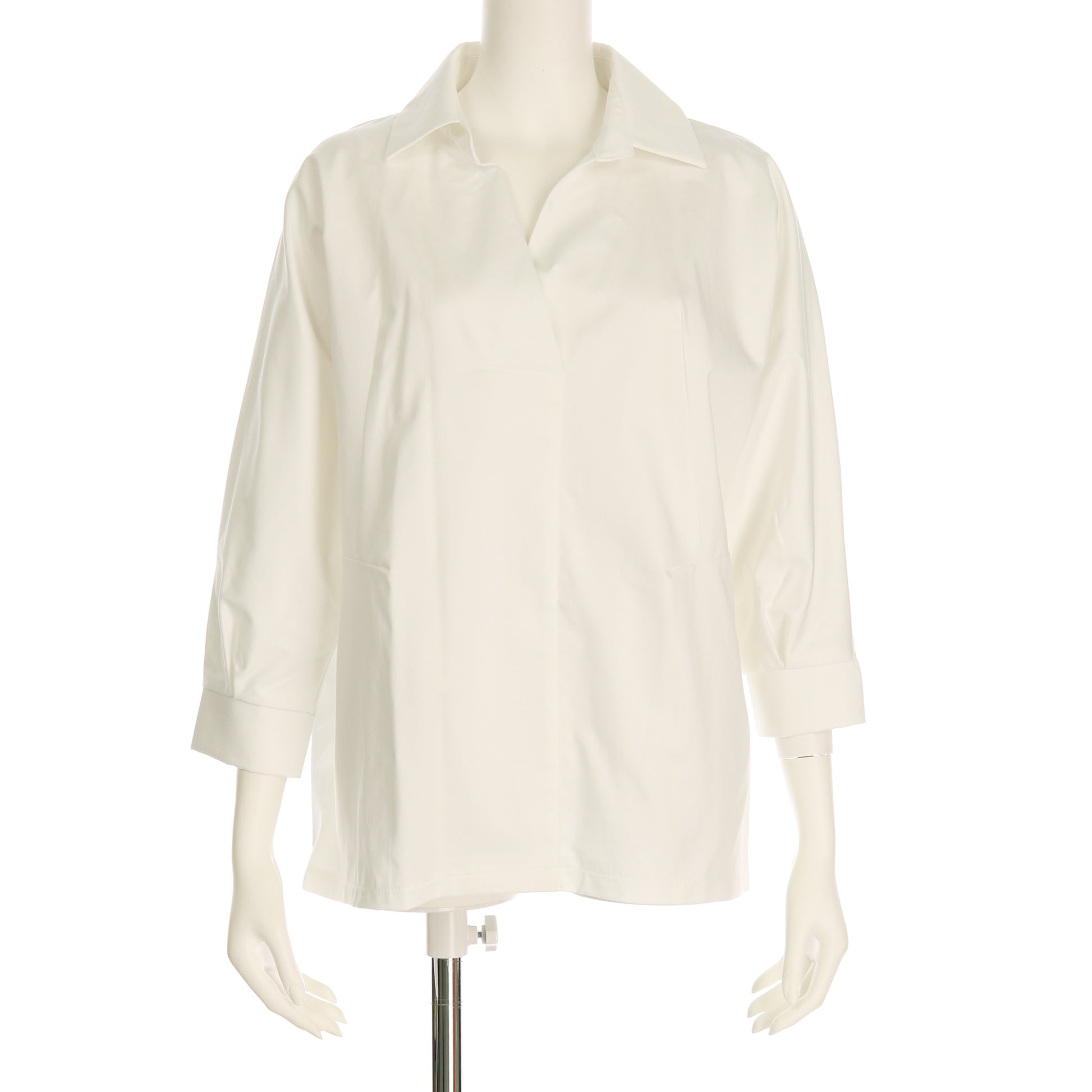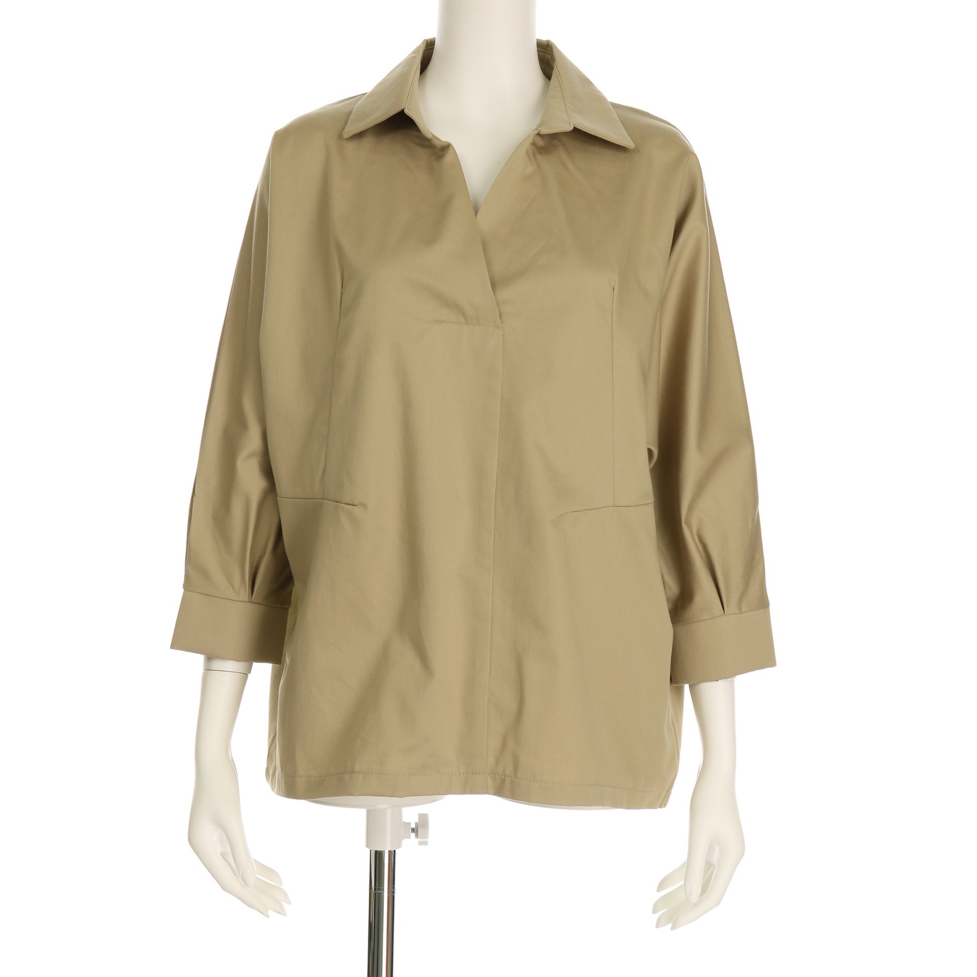 ざっくりと開いたVネックがデコルテラインを綺麗に魅せてくれるスキッパーシャツ。フレアスカートにウエストインしたエレガントスタイルや、テーパードパンツに合わせたマニッシュスタイルもおすすめですよ。