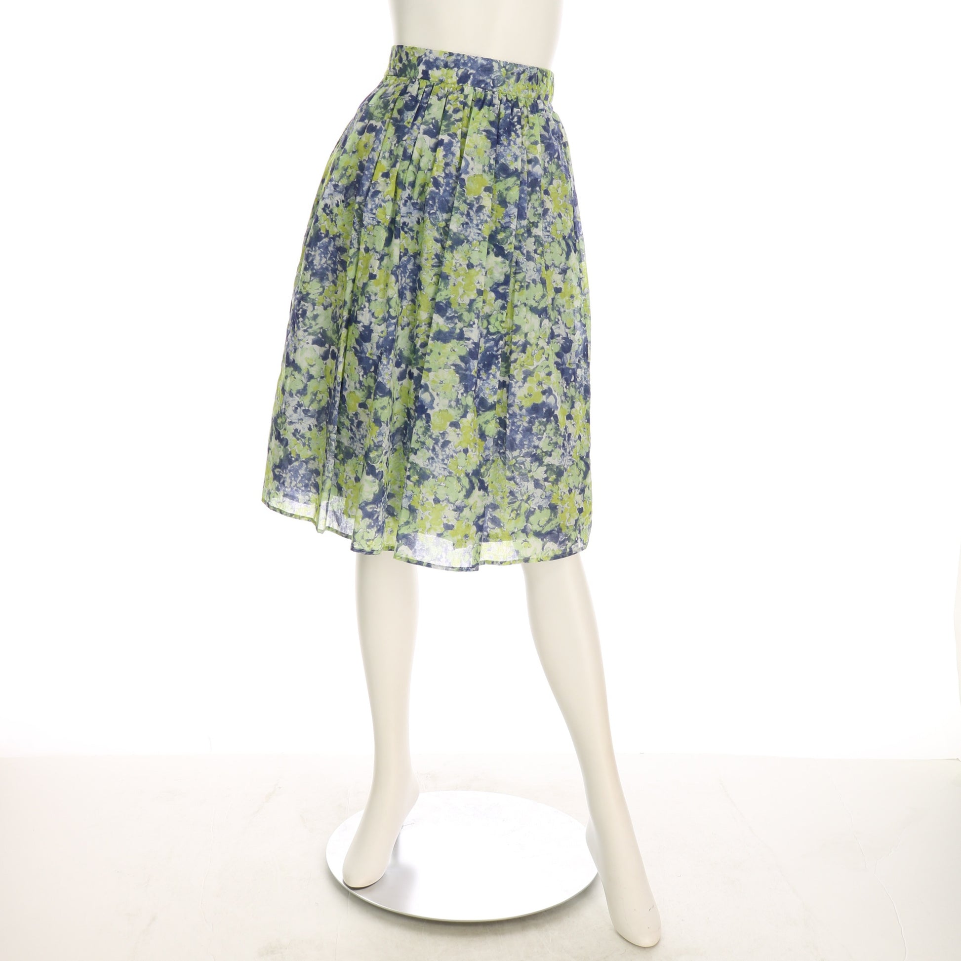 ぼかしフラワープリントのフレアスカート。ボリューム袖のカットソーとサンダルを合わせてお出かけスタイルに着こなしたり、ボウタイブラウスとヒールパンプスを合わせて綺麗めカジュアルに着こなすのも素敵です!