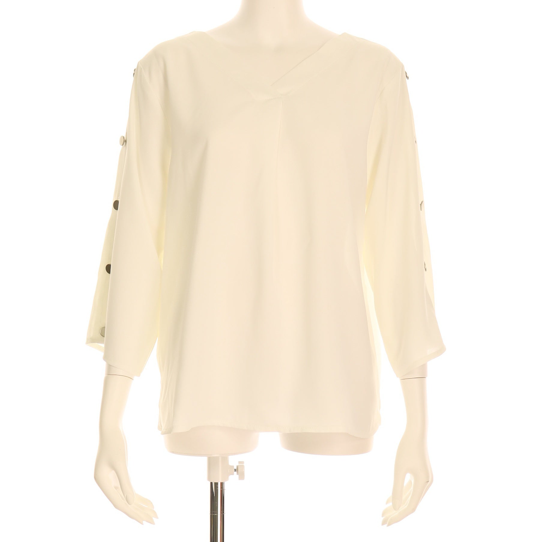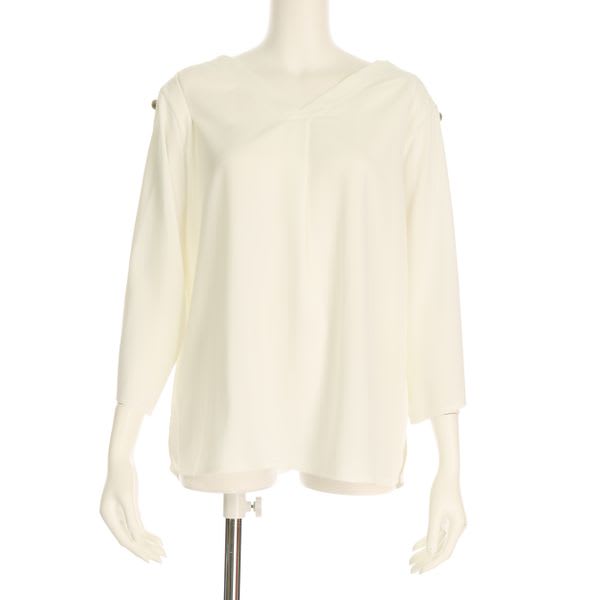 お袖のボタンデザインがポイントのブラウスは、タイトスカートを合わせてすっきりした着こなしに、ワイドパンツを合わせてラフな着こなしもいいですね。