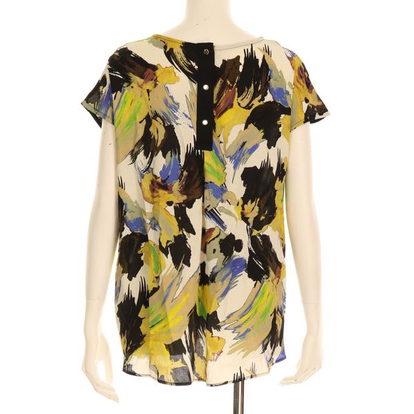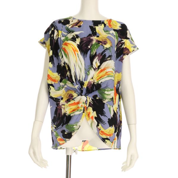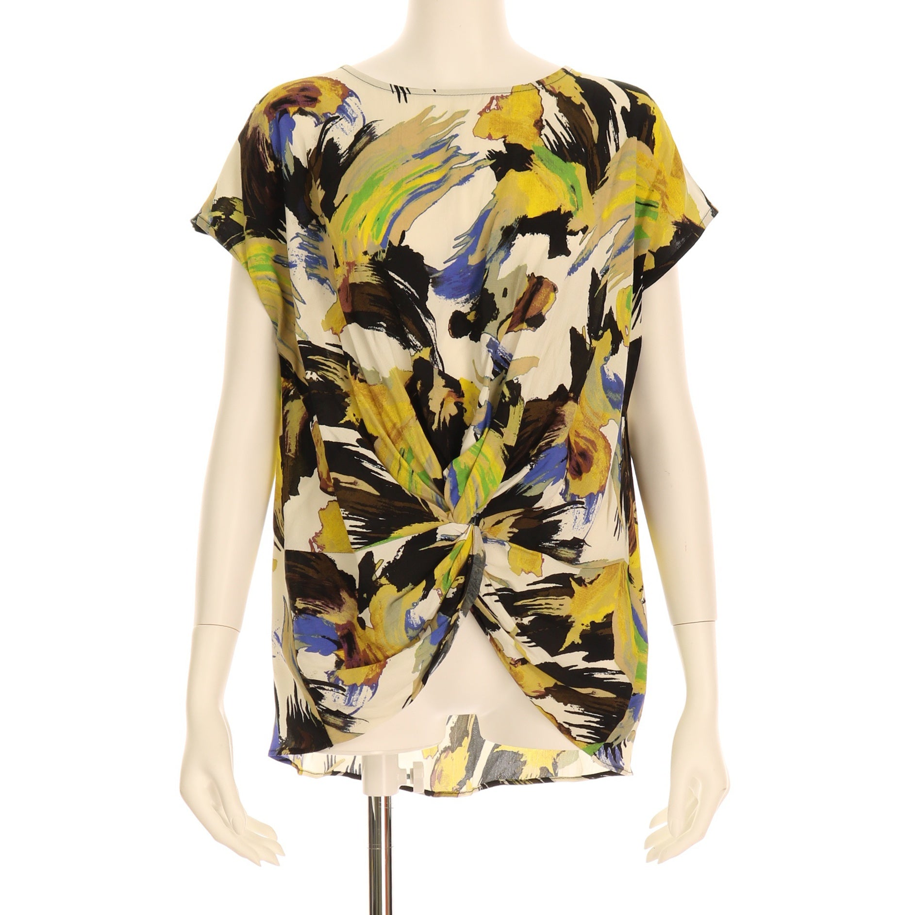 裾のねじりデザインやバックボタンがポイントのブラウス。
