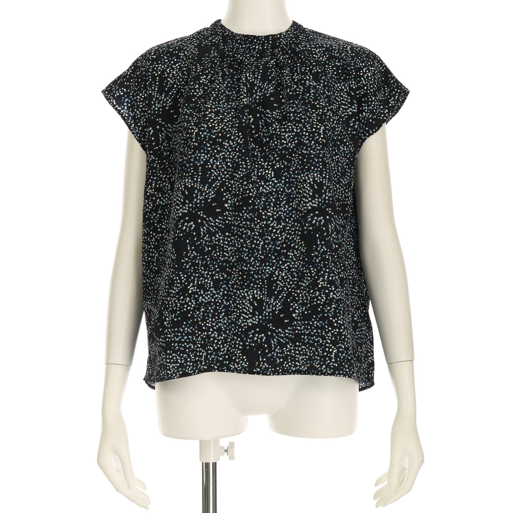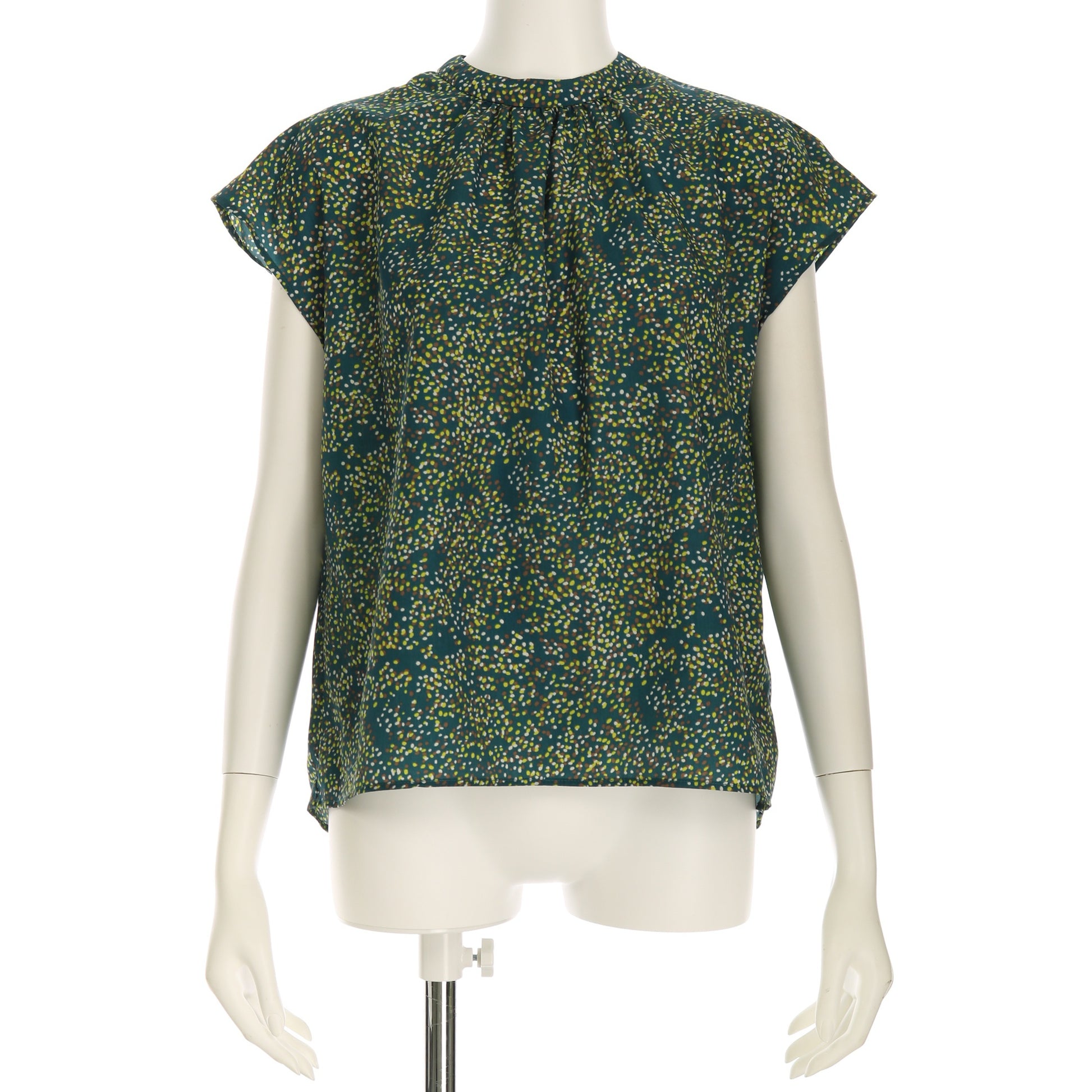 程よく詰まったネックラインの総柄ブラウスは、ワイドパンツを合わせてラフ感のある着こなしに、タイトスカートを合わせてすっきりした着こなしも素敵ですよ。
