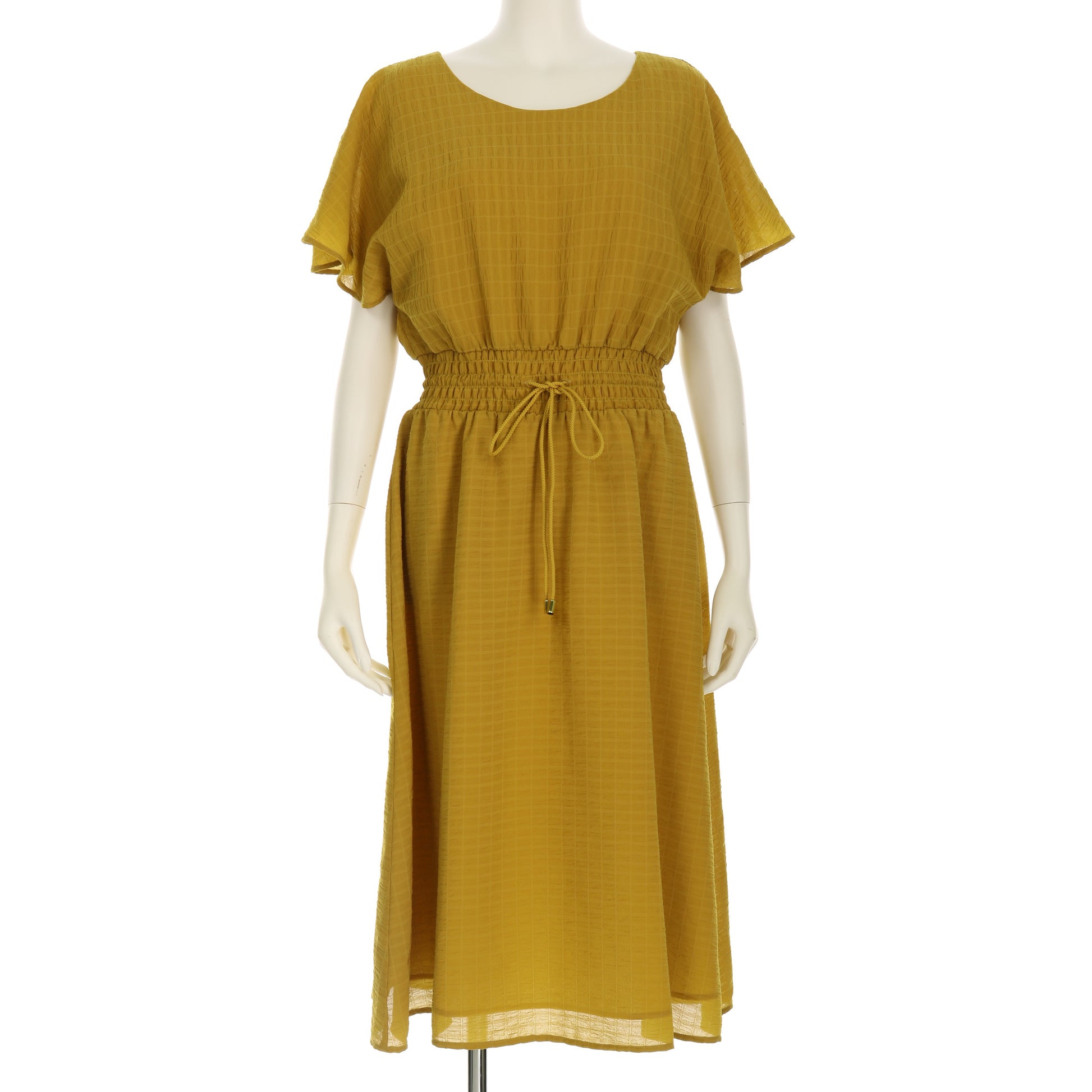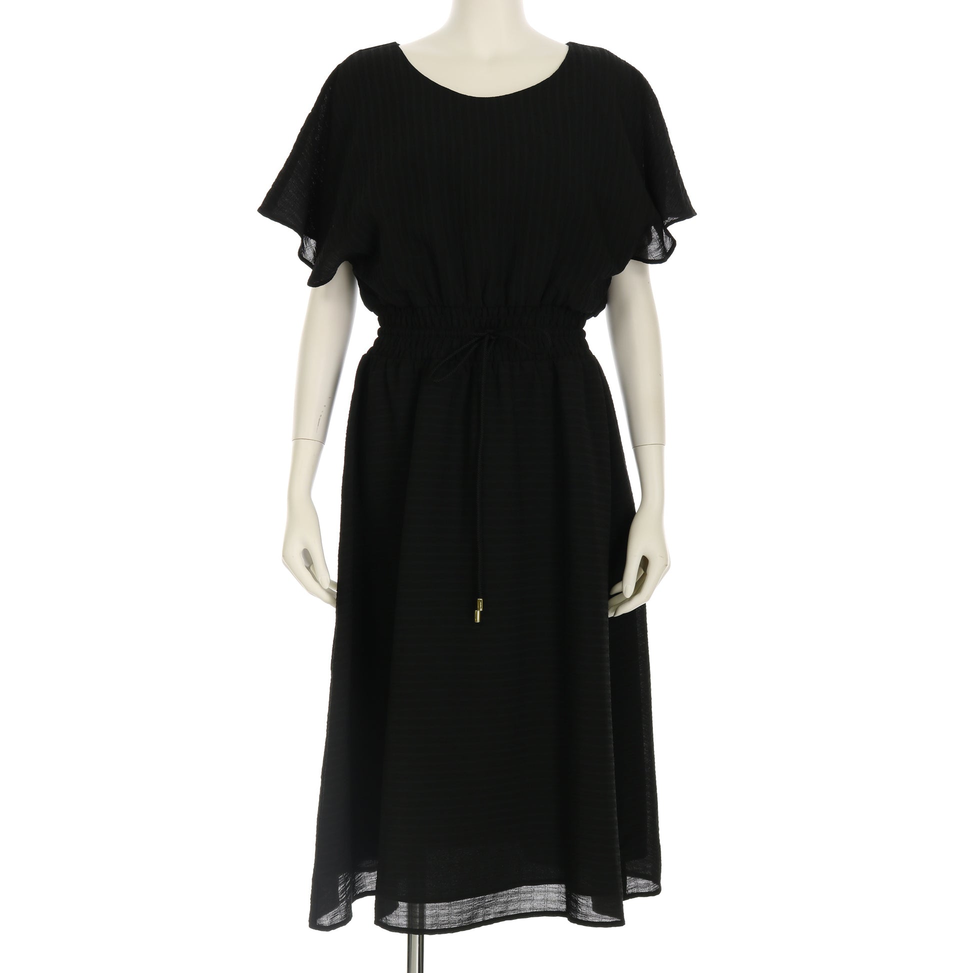 ドロストデザインの織り柄ワンピースは、ヒールパンプスを合わせて上品スタイルに、フラットシューズを合わせてカジュアルな雰囲気も◎ですよ。