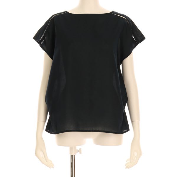 肩のはしごレースがポイントのブラウス。花柄のスカートと合わせて、フェミニンな着こなしに。また、スリムパンツと合わせてすっきり着こなしてもステキですよ!