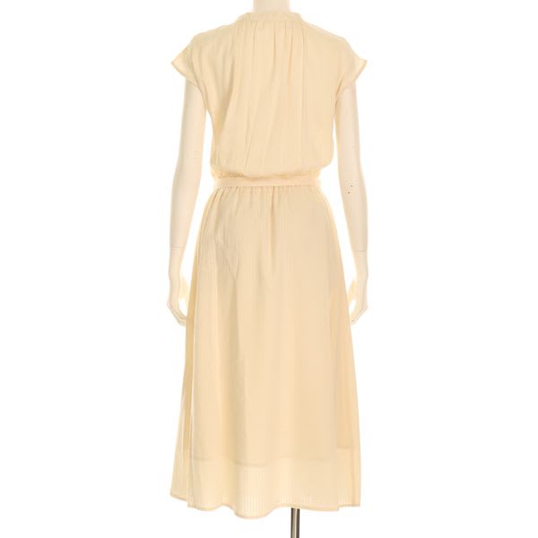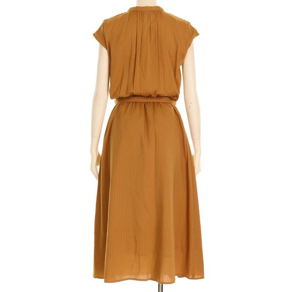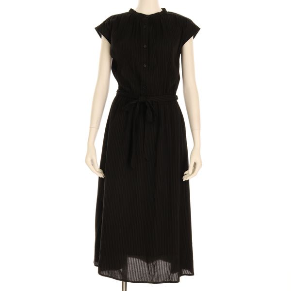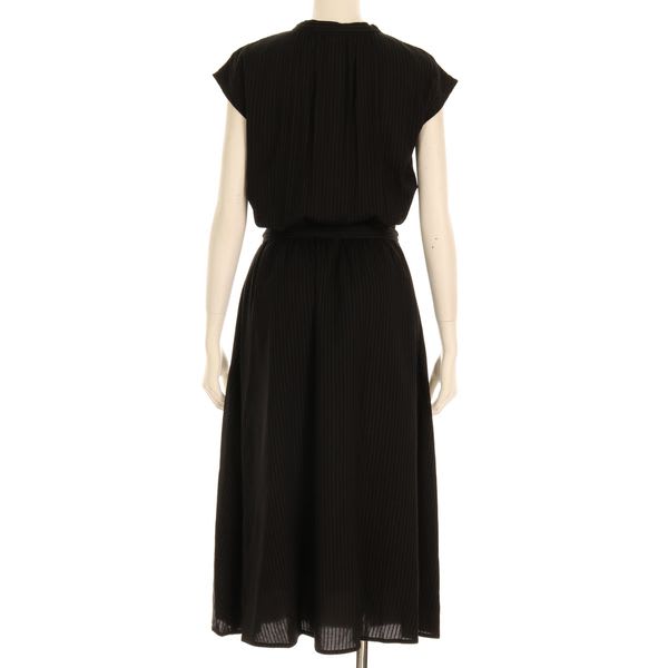 織りのストライプが控えめながら縦のラインを強調し、全身をすっきり見せてくれますよ。スカート部分には裏地が付いてますが、インナーには淡色のものをお勧めいたします。