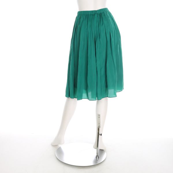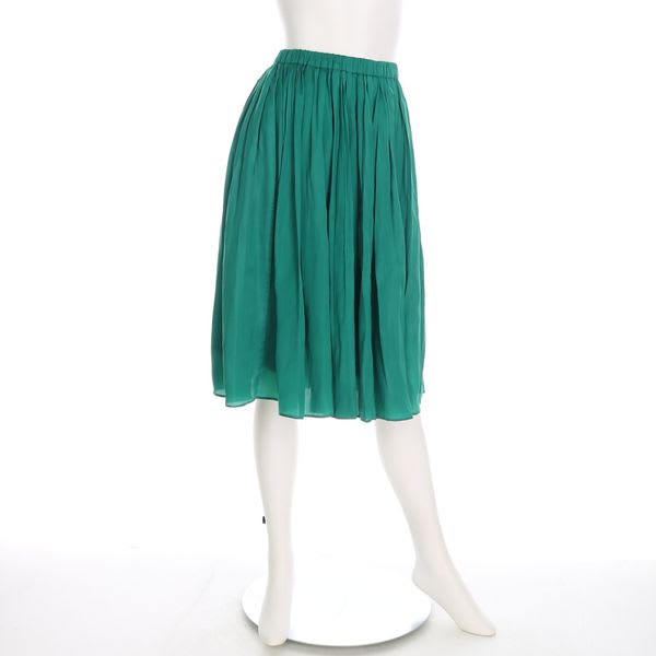 ツヤと軽さがポイントの生地は、ギャザースカートでしか出せない揺れ感が上品かつ華やかな印象に。