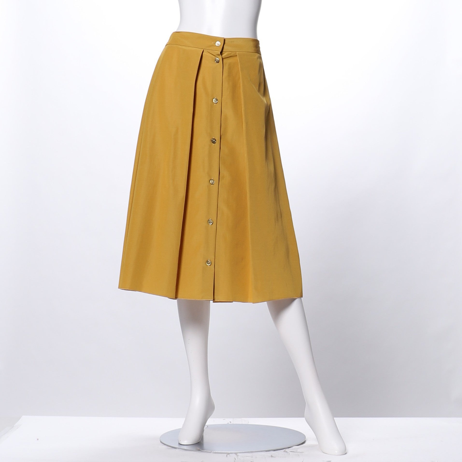 フロントボタンがポイントのタック入りスカート。レースブラウスに合わせてキレイめに、無地のカットソーに合わせてカジュアルに着こなしてもいいですね!