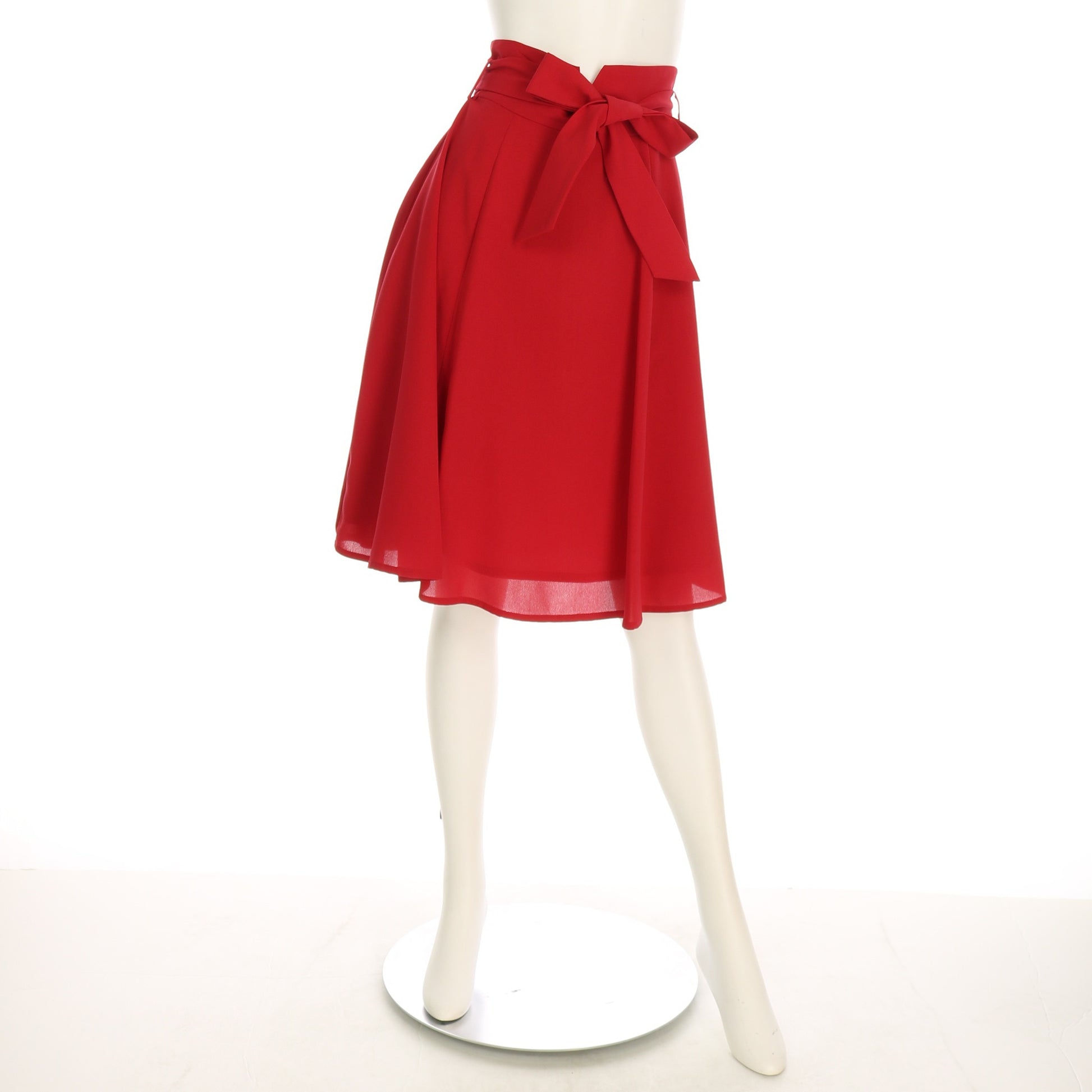 ウエストリボン付きフレアスカート。ギャザーブラウスを合わせてフェミニンスタイルに、リブカットソーを合わせてカジュアル感をプラスするのも◎。