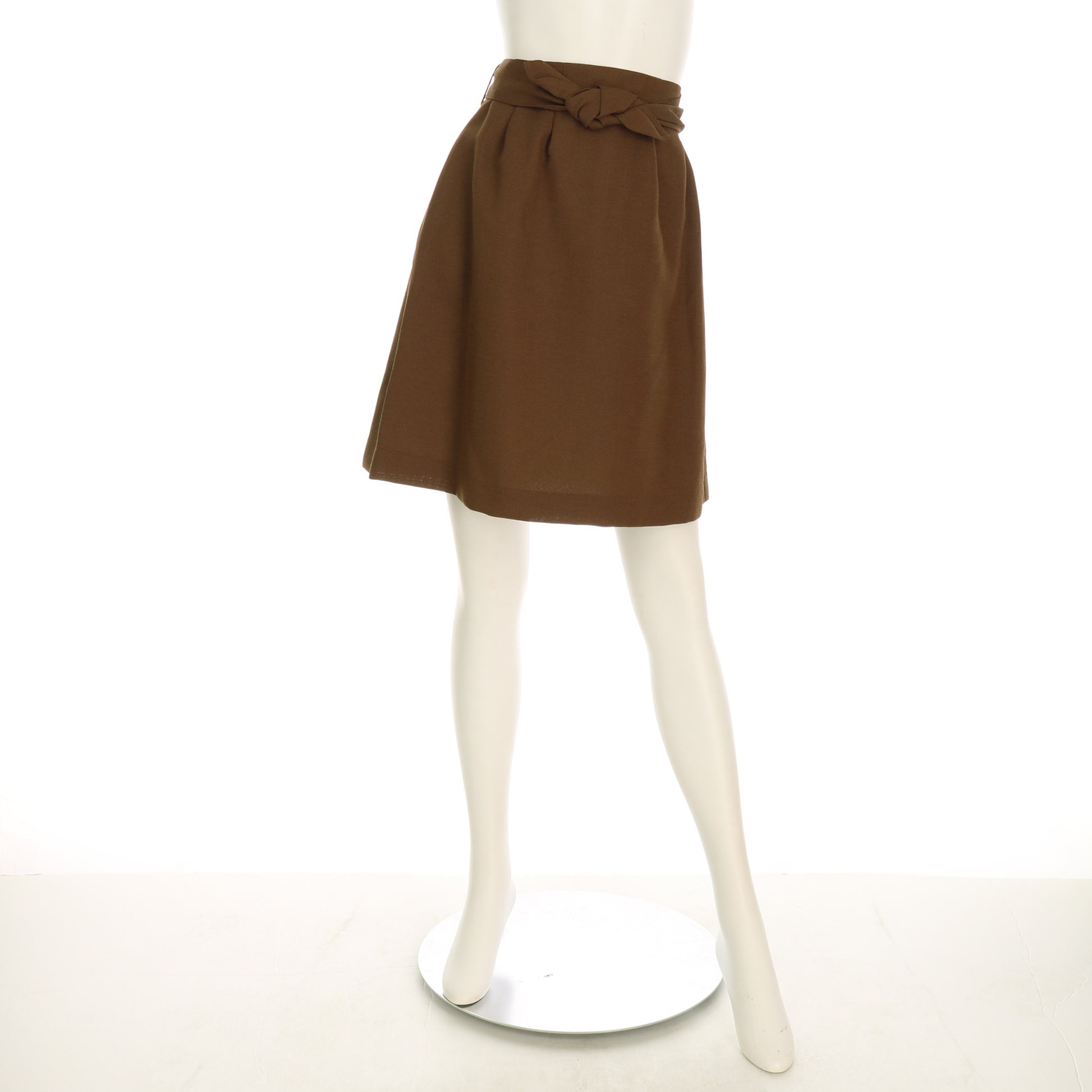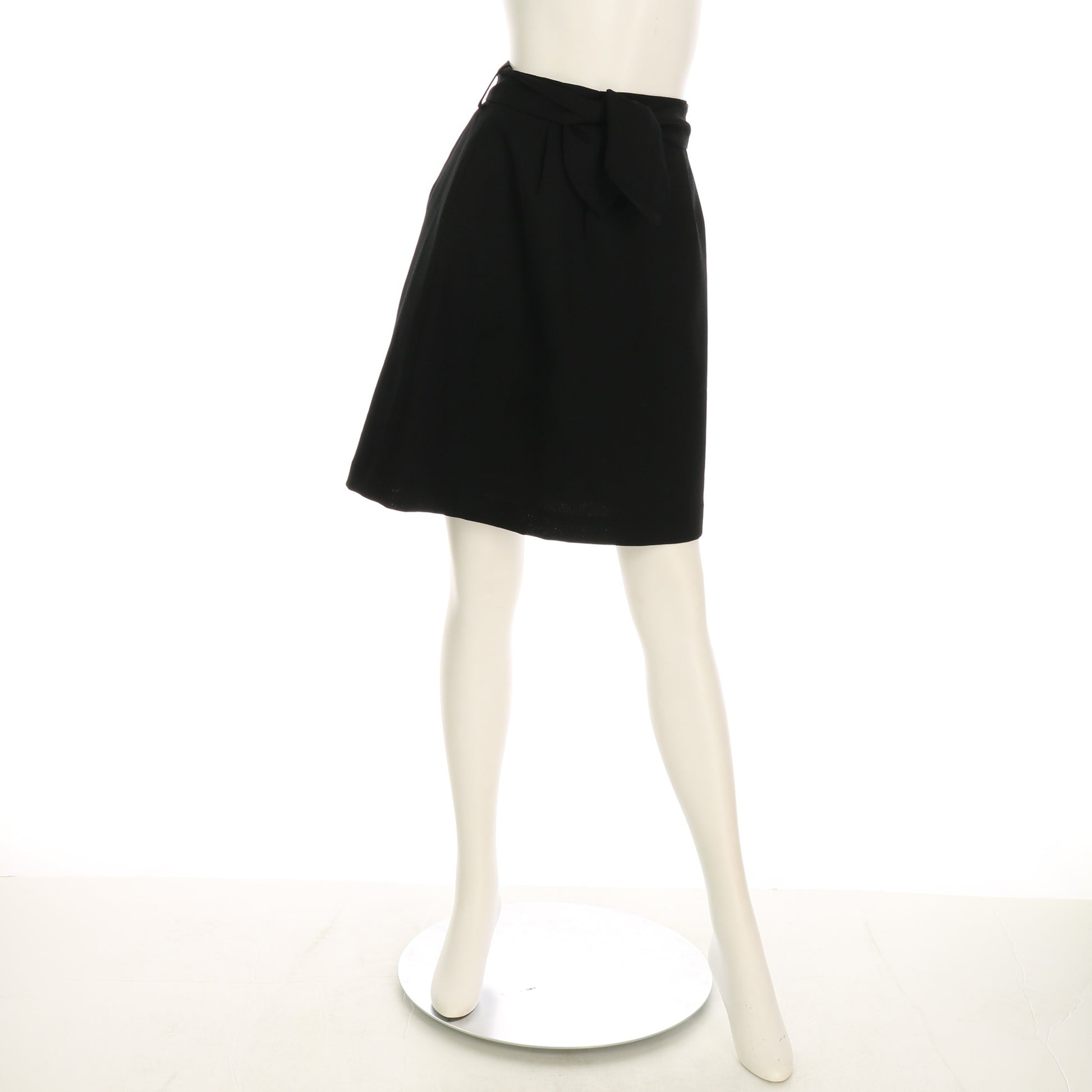 結びデザインのベルトがアクセントの台形スカート。とろみブラウと合わせてキレイめスタイルに、ボートネックカットソーを合わせてカジュアル感をプラスするのも◎。