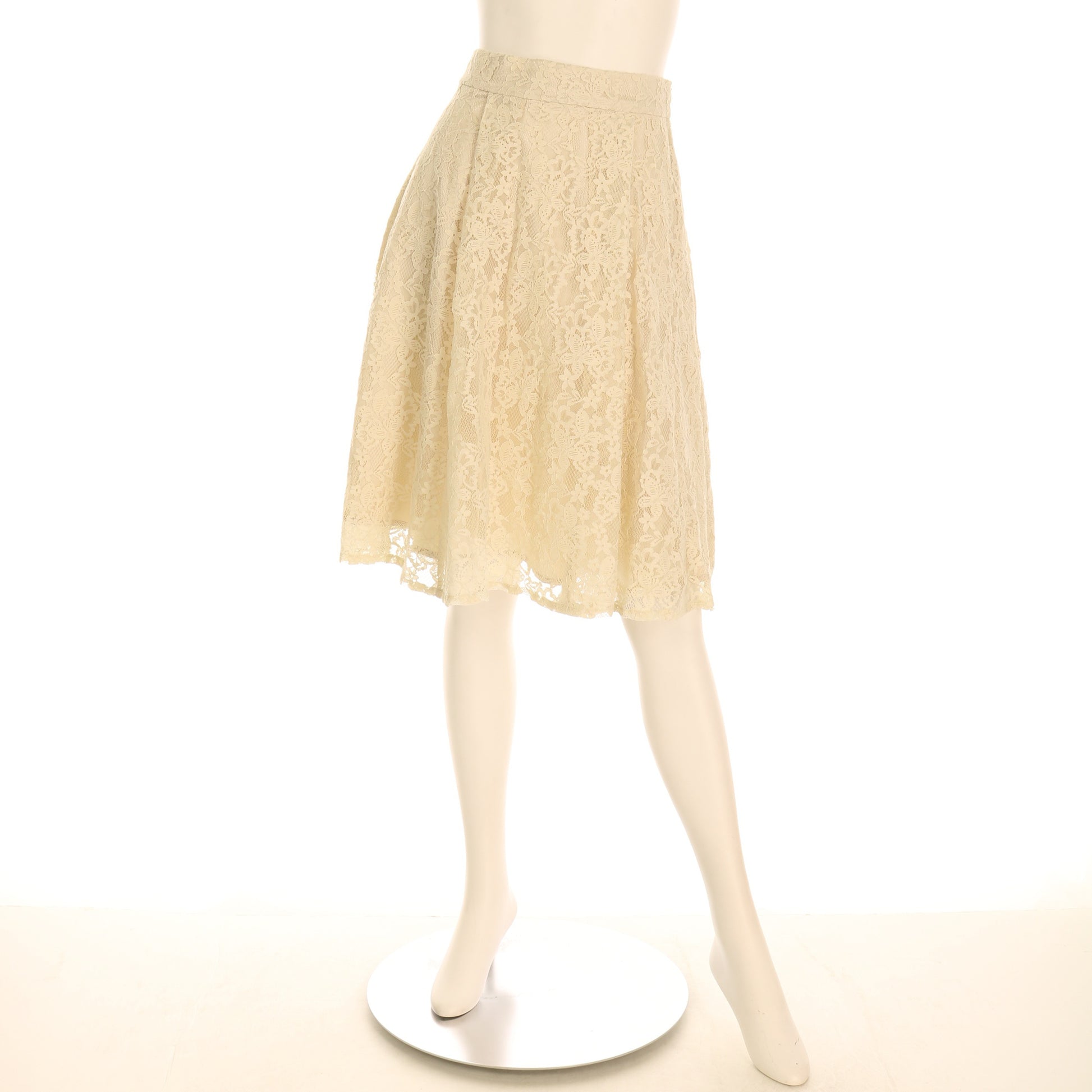 オフィス用に定番で持っておきたい総レーススカート。ひざ下を綺麗に見せてくれる丈になっています。お洗濯可能なのも嬉しいポイント!