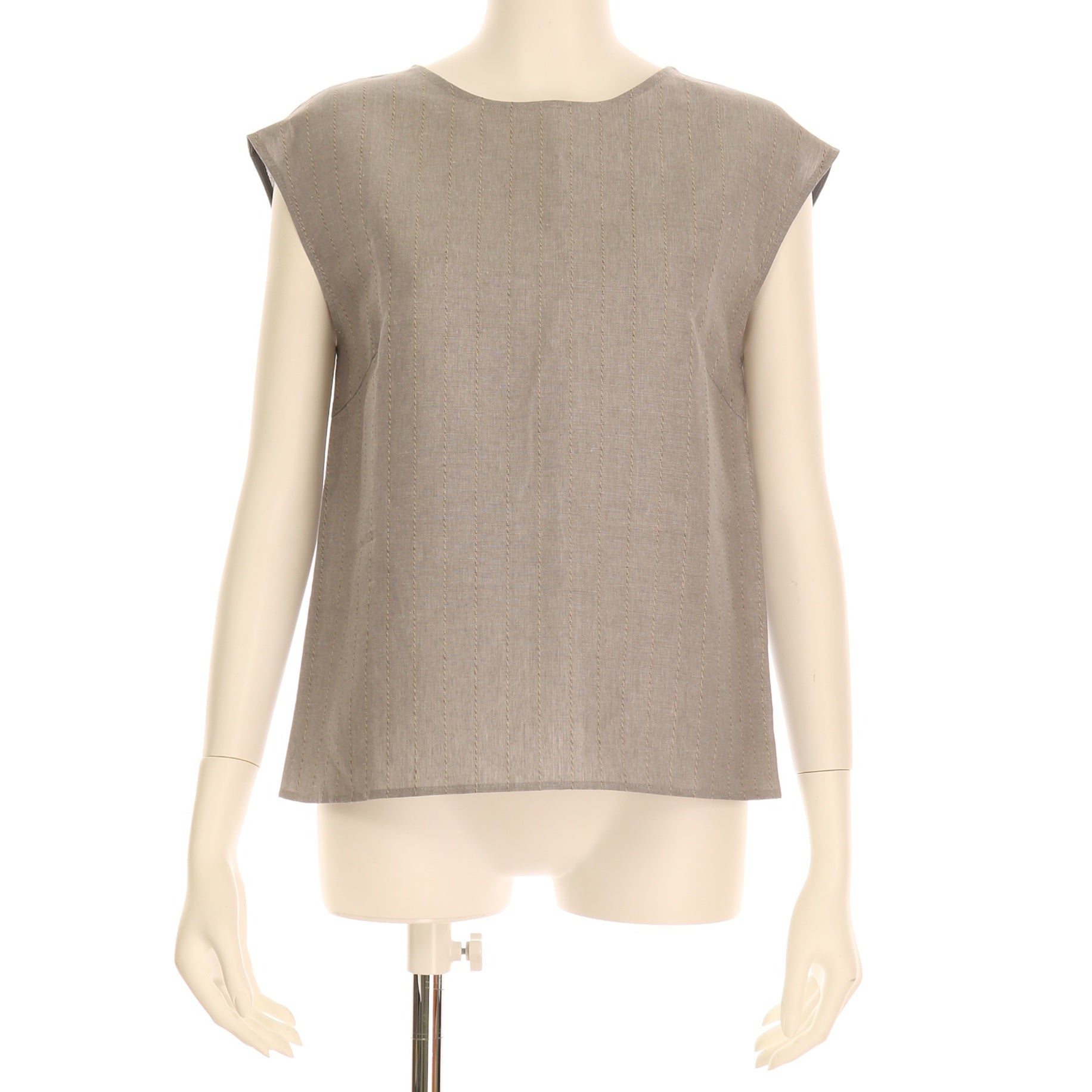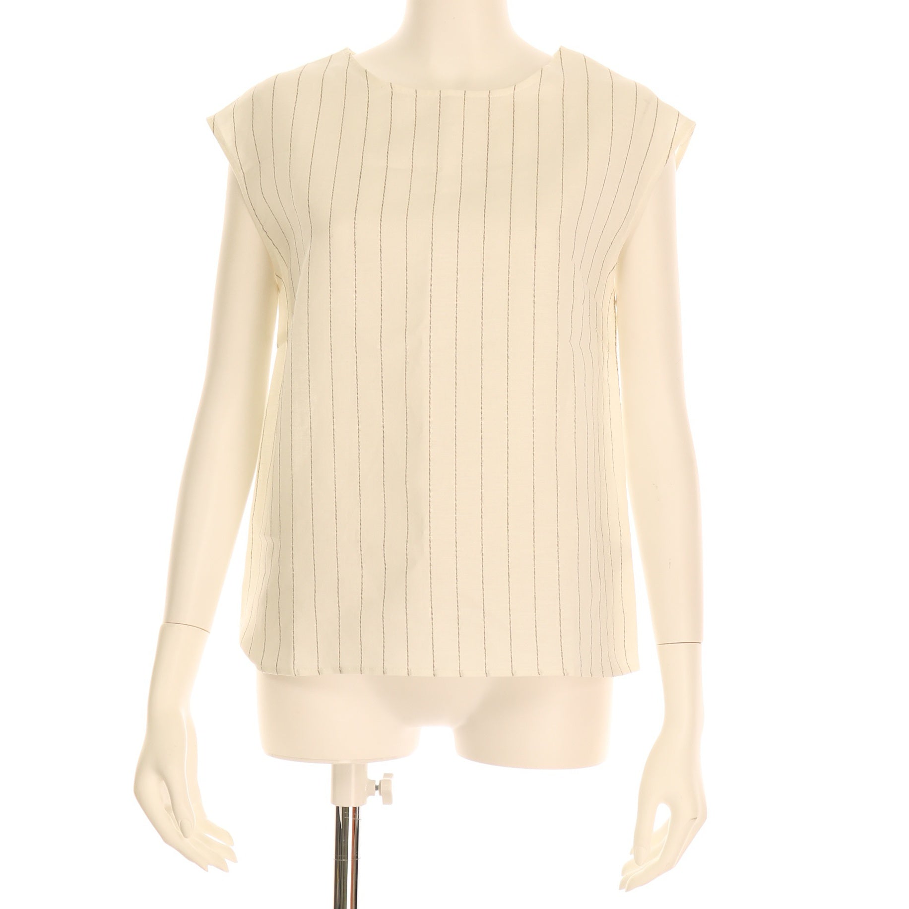 ベーシックなクルーネックブラウス。さり気なく入ったストライプ柄がクールな感じで素敵です!テーパードパンツを合わせたスッキリコーデや、フレアスカートにインしてレディライクな着こなしも良いですね。