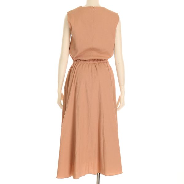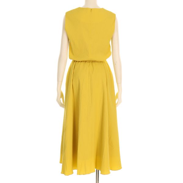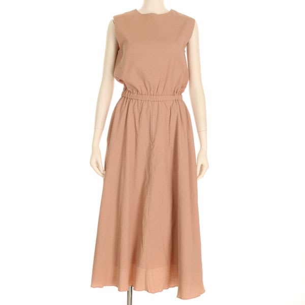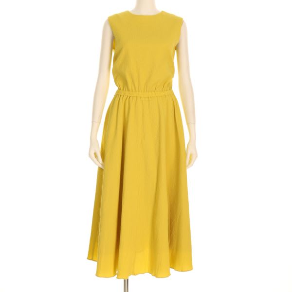 ウエストゴムのシンプルなワンピースです。ロングネックレスにヒールサンダルを合わせてきれいめコーデに♪カーディガンにフラットシューズを合わせて落ち着いた雰囲気も素敵ですね!