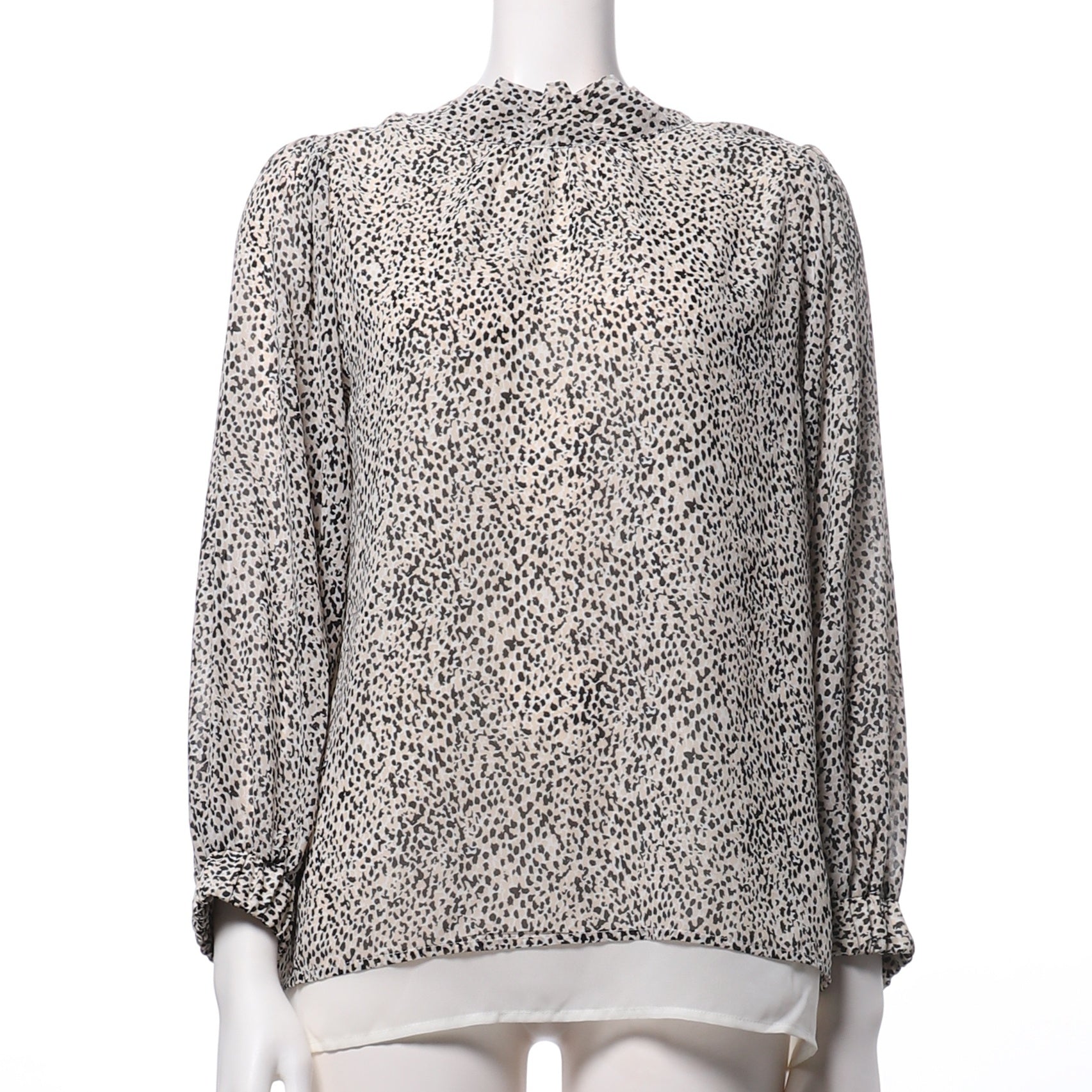 前後2wayで着用できる総柄ブラウス。リボン側をフロントにタイトスカートに合わせて女性らしいスタイルに、スタンドネック側をフロントにテーパードパンツを合わせてきれいめカジュアルスタイルにも◎