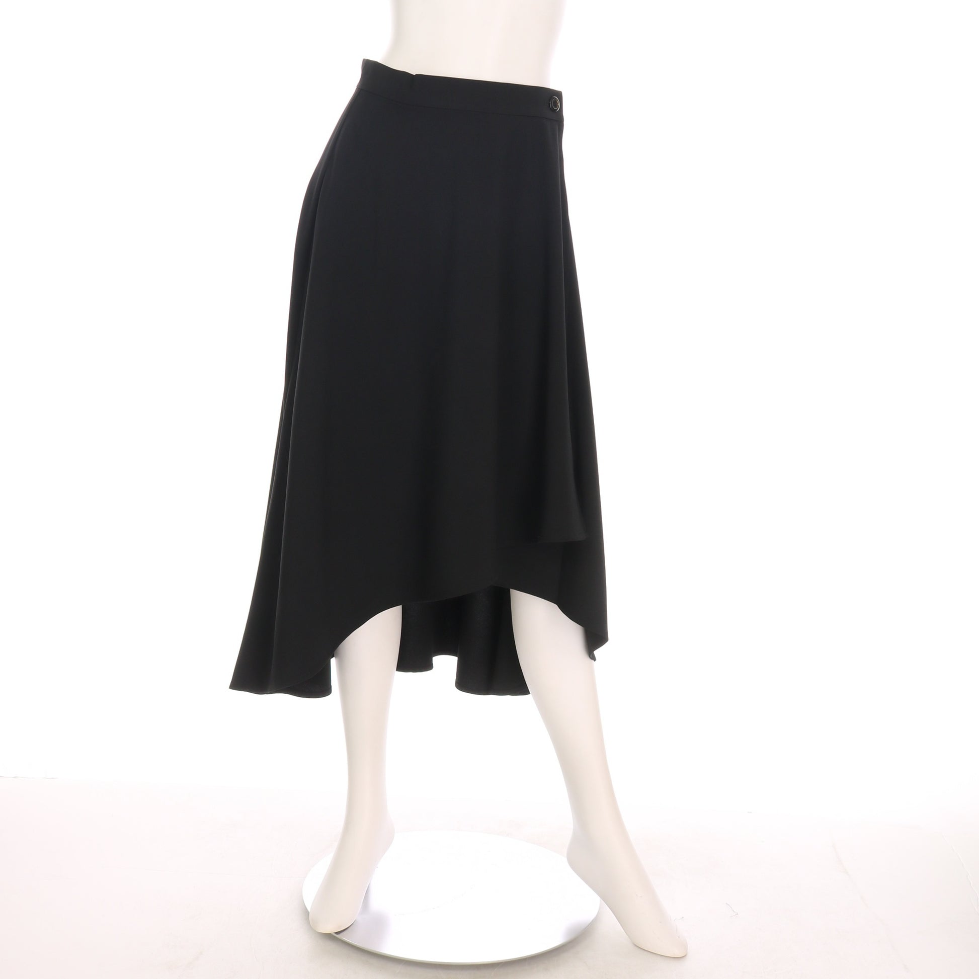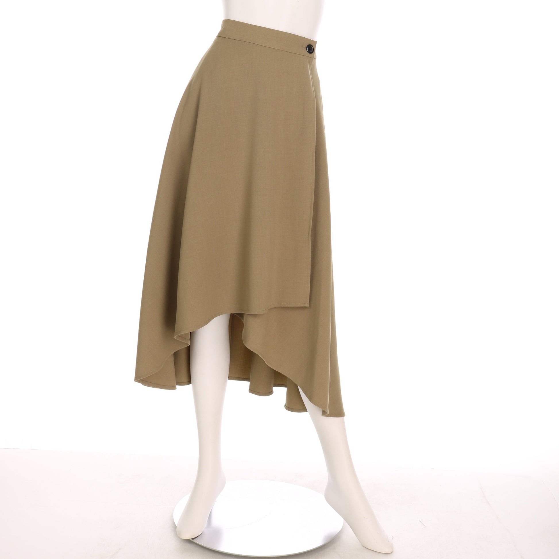 ラップ風デザインのイレギュラーヘムフレアスカート。ブラウスとヒールパンプスを合わせてきれいめカジュアルスタイルに、ボーダーカットソーとスニーカーでカジュアルスタイルもおすすめですよ!