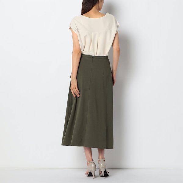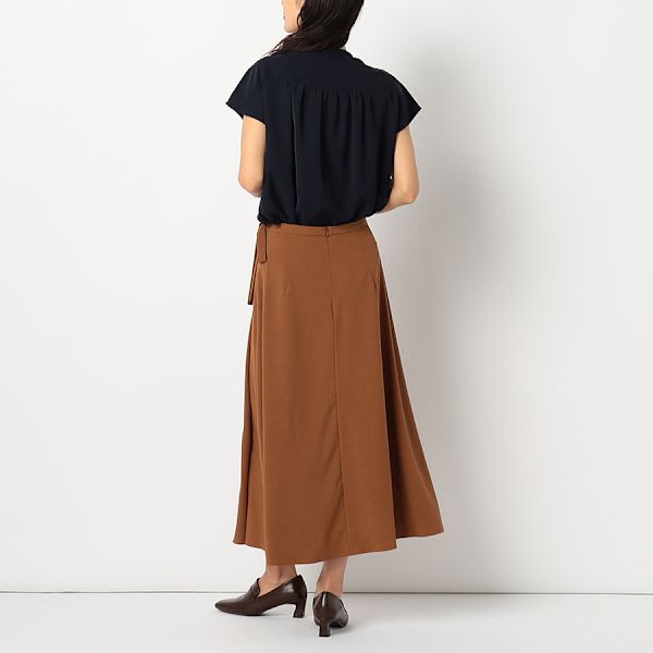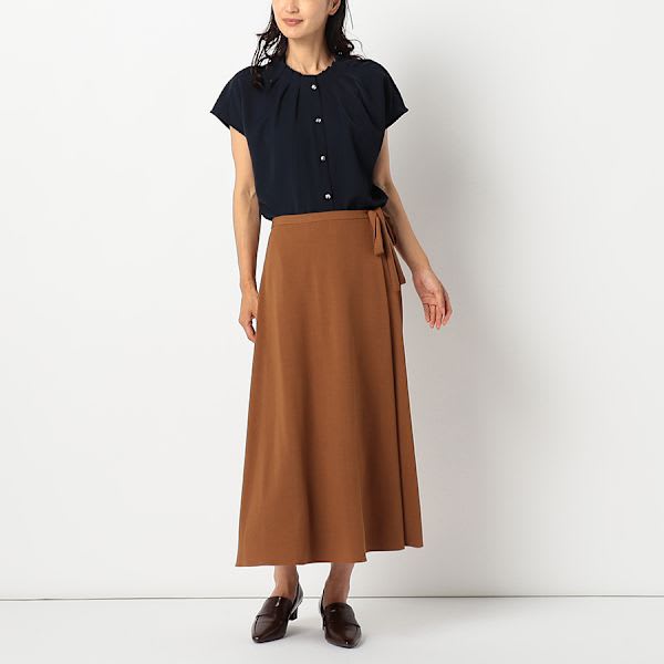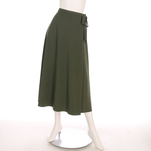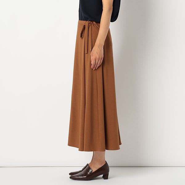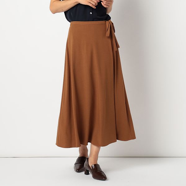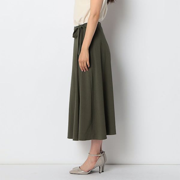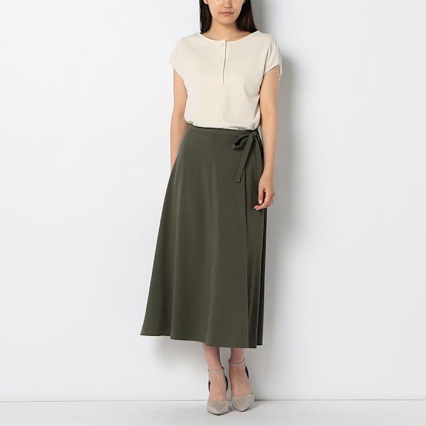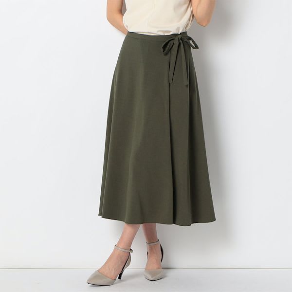 サイドのリボンデザインがポイントのラップスカート。とろみブラウスを合わせて女性らしい着こなしに、カットソーを合わせてカジュアルな着こなしもおすすめです◎