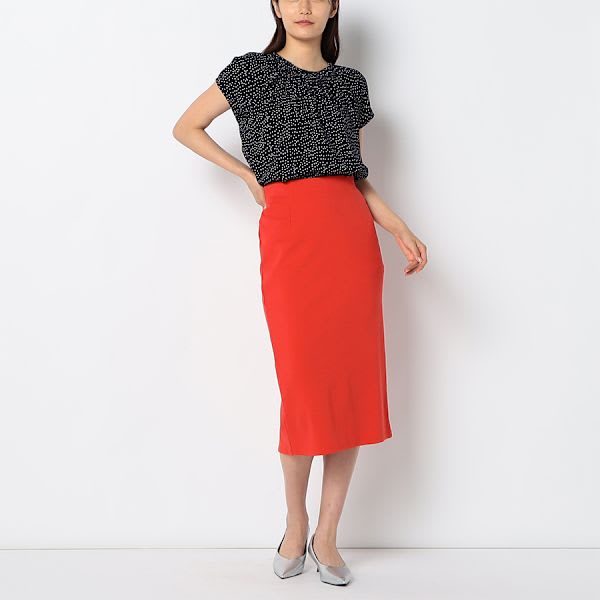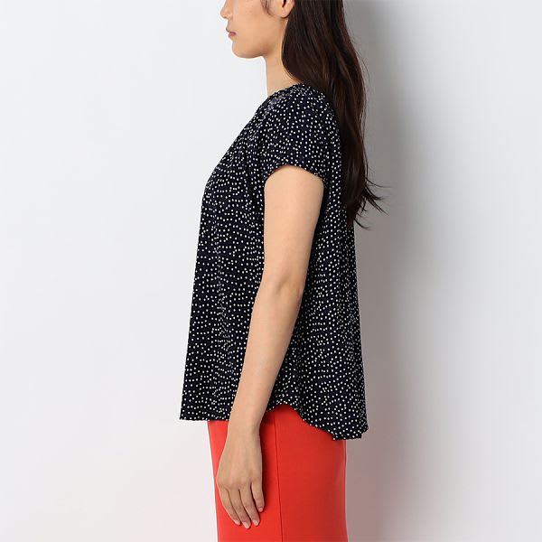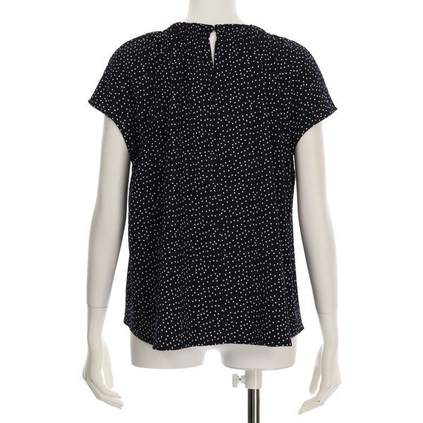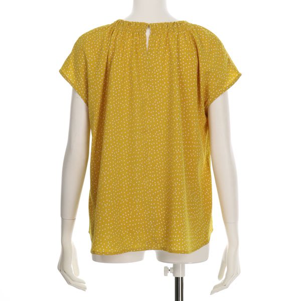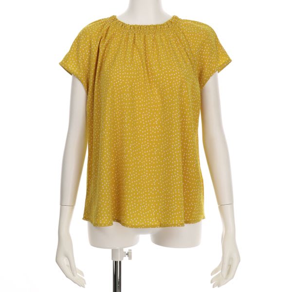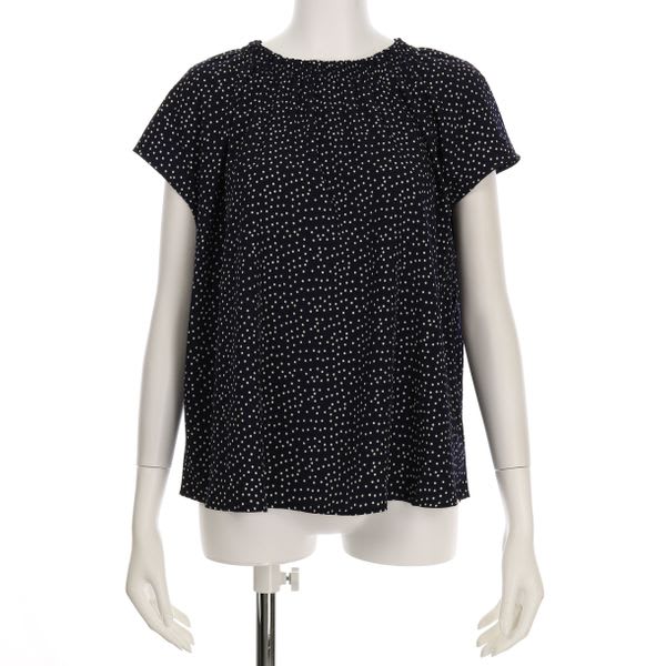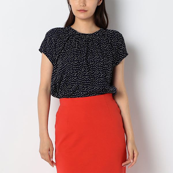 ギャザーネックのドット柄ブラウス。フレアスカートと合わせてフェミニンに仕上げたり、ストレートパンツと合わせてスッキリとした着こなしもおすすめ◎