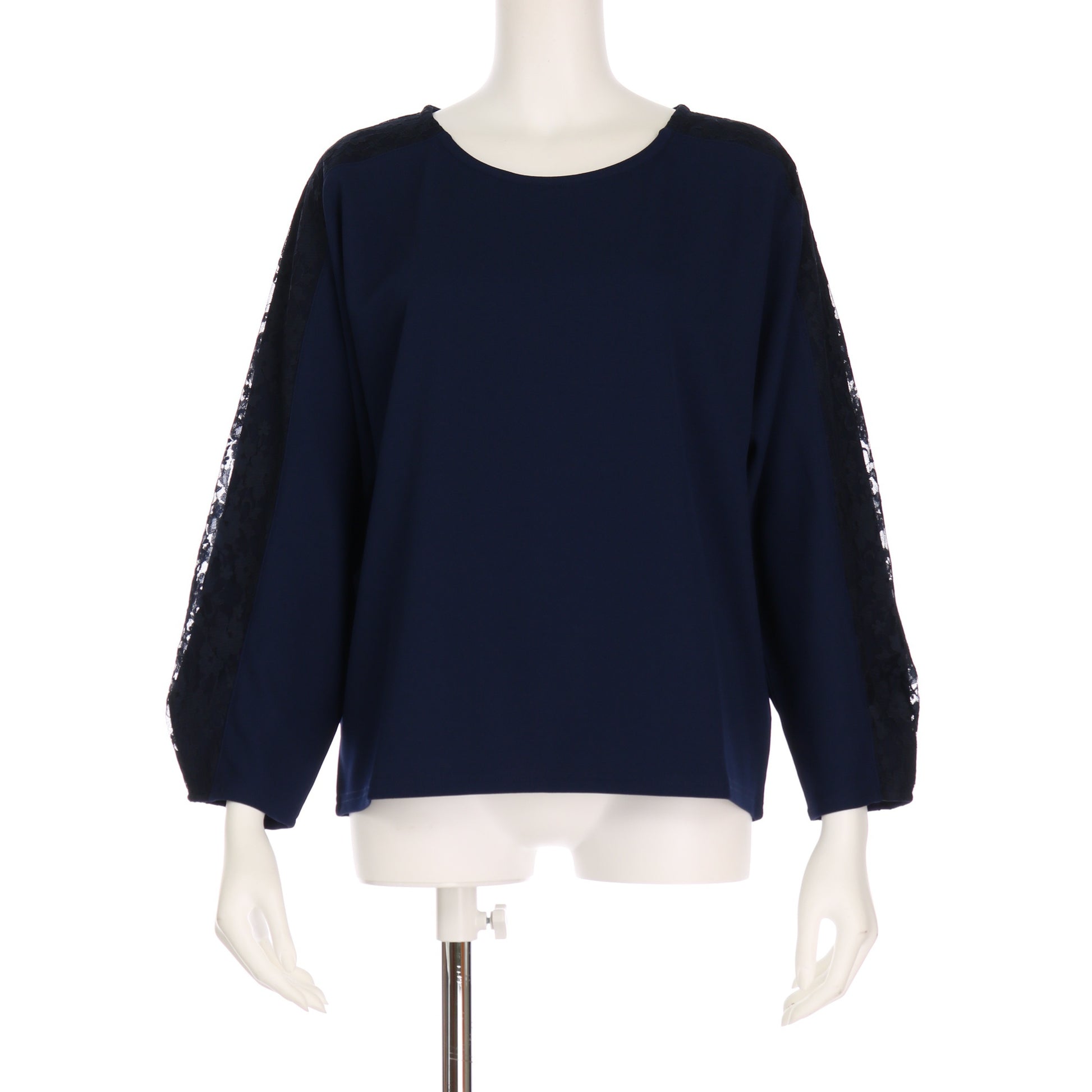 「紺色がきれいで、素材もよく、着やすかったです。袖のレースも程よく、きれいでした。ボートネックっぽい襟から、私のモリッとした猫背の僧帽筋が出てしまい、1枚では着にくかったです。中に一枚薄手のものを合わせて着たところ、いい感じでした。袖が少し長いかなと思いましたが、全体にはちょうどいいサイズでした。」