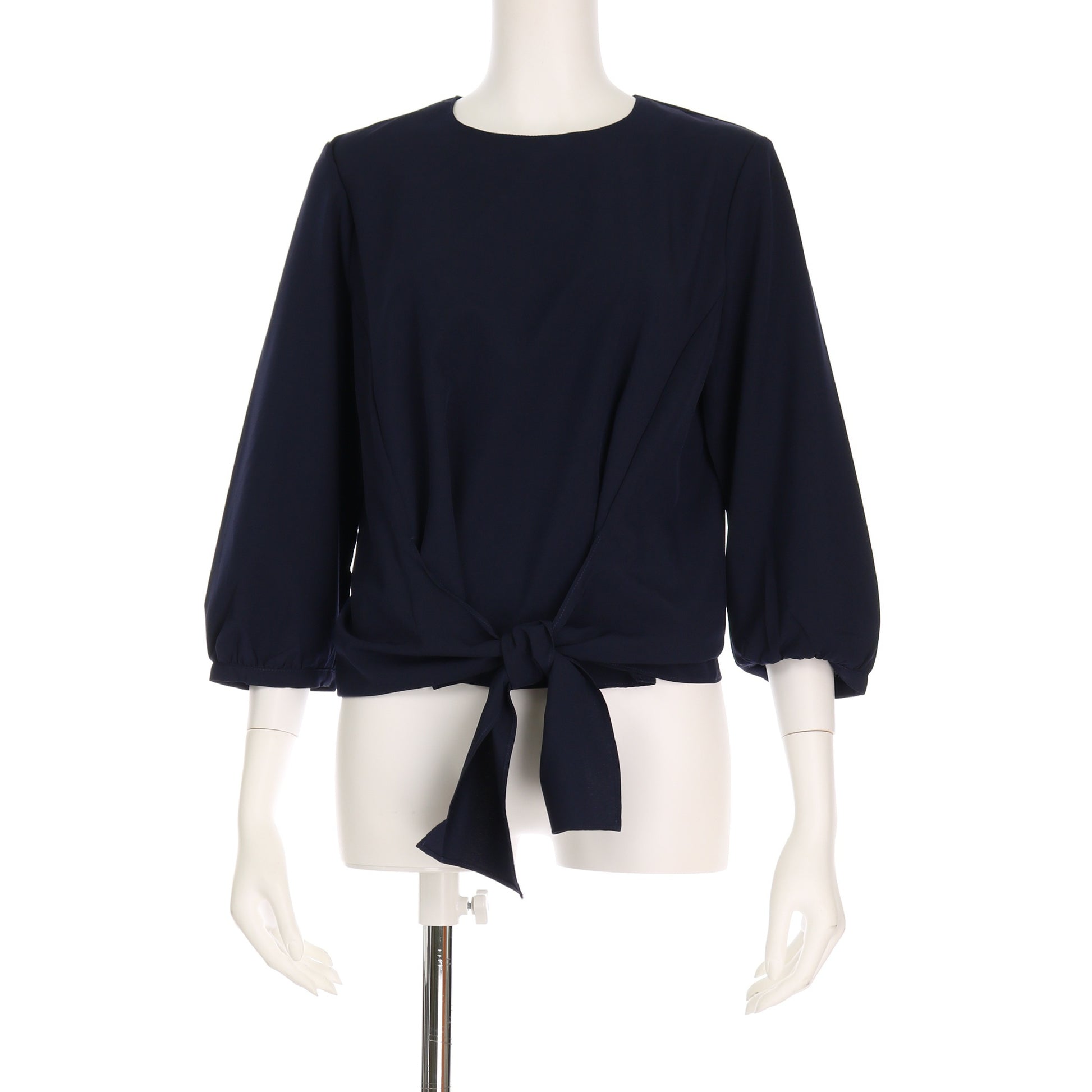 ウエストリボンがポイントのラウンドネックブラウス。フレアスカートと合わせてレディライクに仕上げたり、テーパードパンツと合わせてきれいめカジュアルに仕上げるのもいいですね。