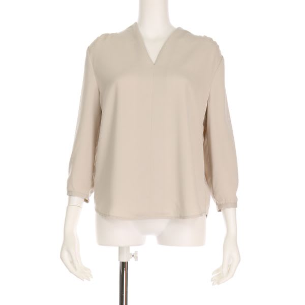 首元のVラインがすっきりとした印象のブラウス。フレアスカートと合わせて女性らしいスタイルで着こなしたり、首元にスカーフを加えてスタイリッシュに仕上げても良いですね。