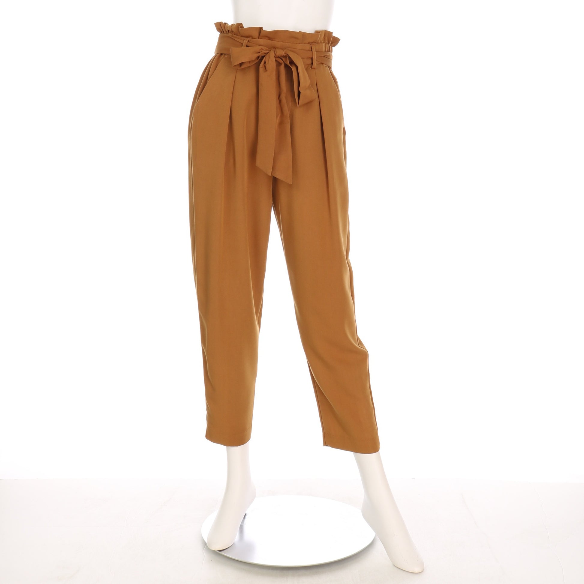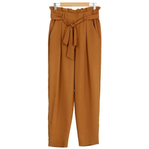 ラッピングウエストのテーパードパンツ。とろみブラウスとパンプスを合わせてきれいめカジュアルに仕上げたり、カットソーとスニーカーを組み合わせて動きやすいカジュアルコーデに仕上げてみても◎