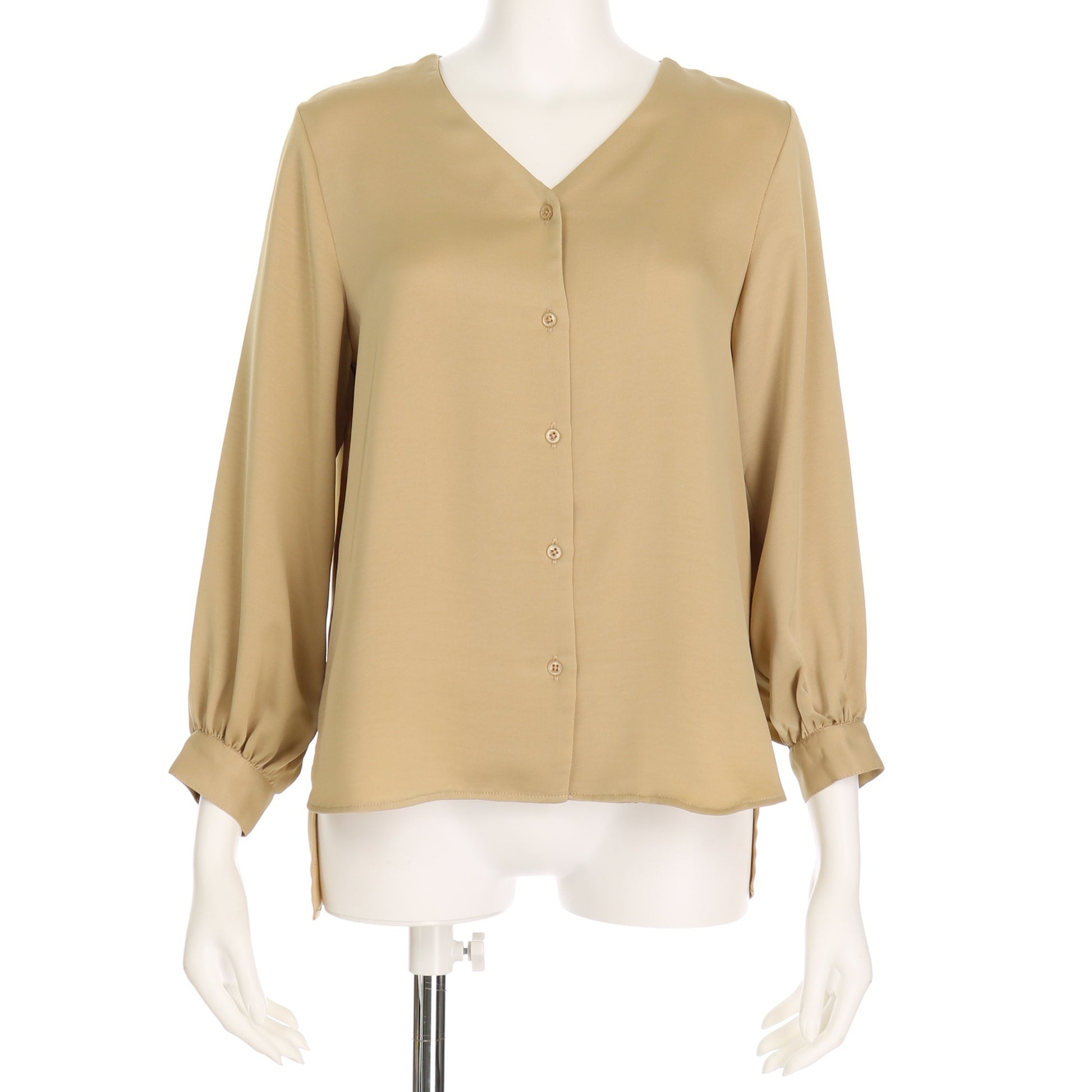 とろみVネックブラウス。テーパードパンツにフロントインしてでクールなスタイルに、タイトスカートに合わせて上品なスタイルも◎