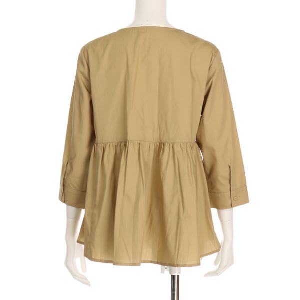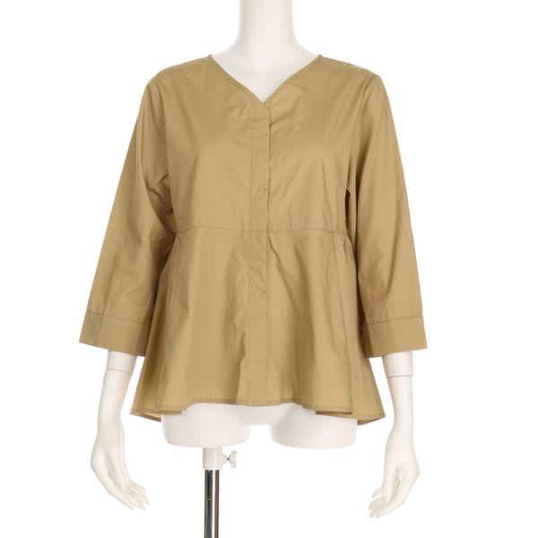 Vネックペプラムブラウス。タイトスカートを合わせて上品なスタイルに、タックパンツを合わせてきれいめカジュアルスタイルも良いですね。