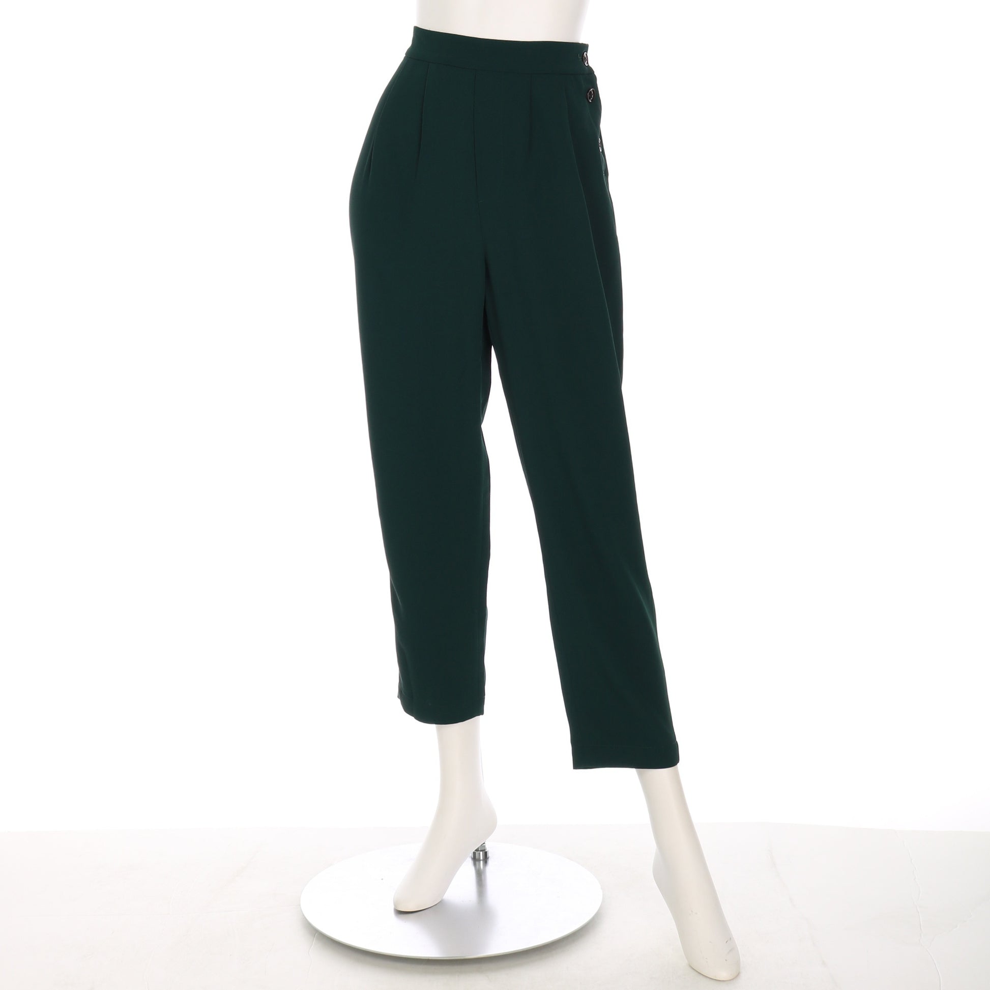 サイドのボタンがポイントのタック入りテーパードパンツ。シフォンブラウスやシャツを合わせてオフィスカジュアルに、オーバーサイズのカットソーを合わせてラフに着こなしても素敵です。