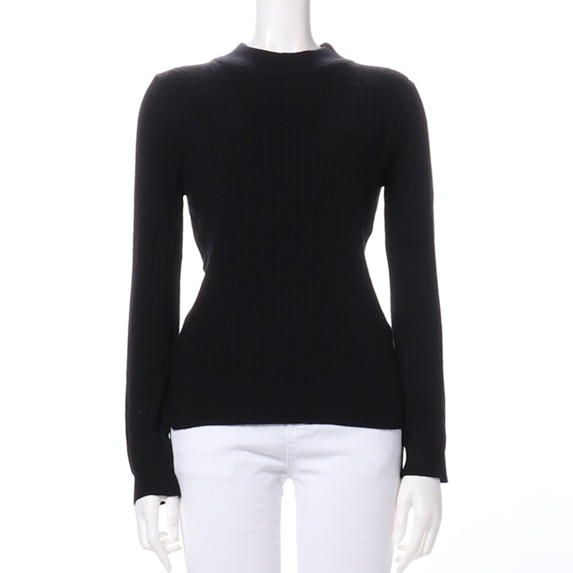 ハイネックリブニット。オンオフどちらでも使えるアイテムです。アイラインスカートを合わせてきれいめスタイルに、ウエストベルト付きストレートパンツを合わせてきれいめカジュアルスタイルも良いですね。