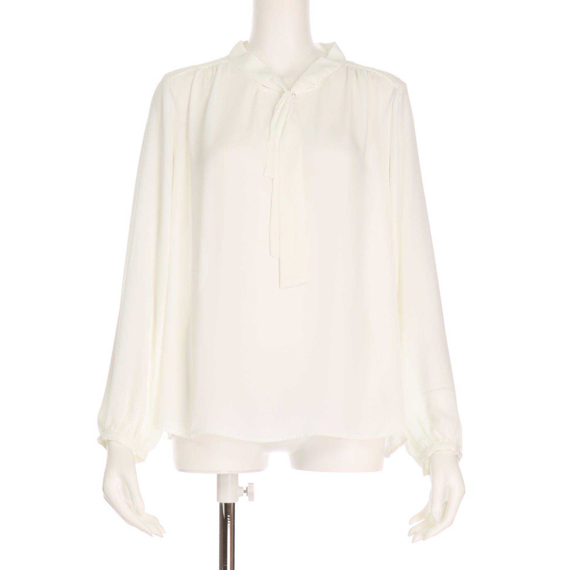 ボウタイ風デザインがポイントのブラウス。フレアスカートを合わせてレディライクなスタイルに、テーパードパンツに合わせてきちんと感のあるスタイルもおすすめです◎