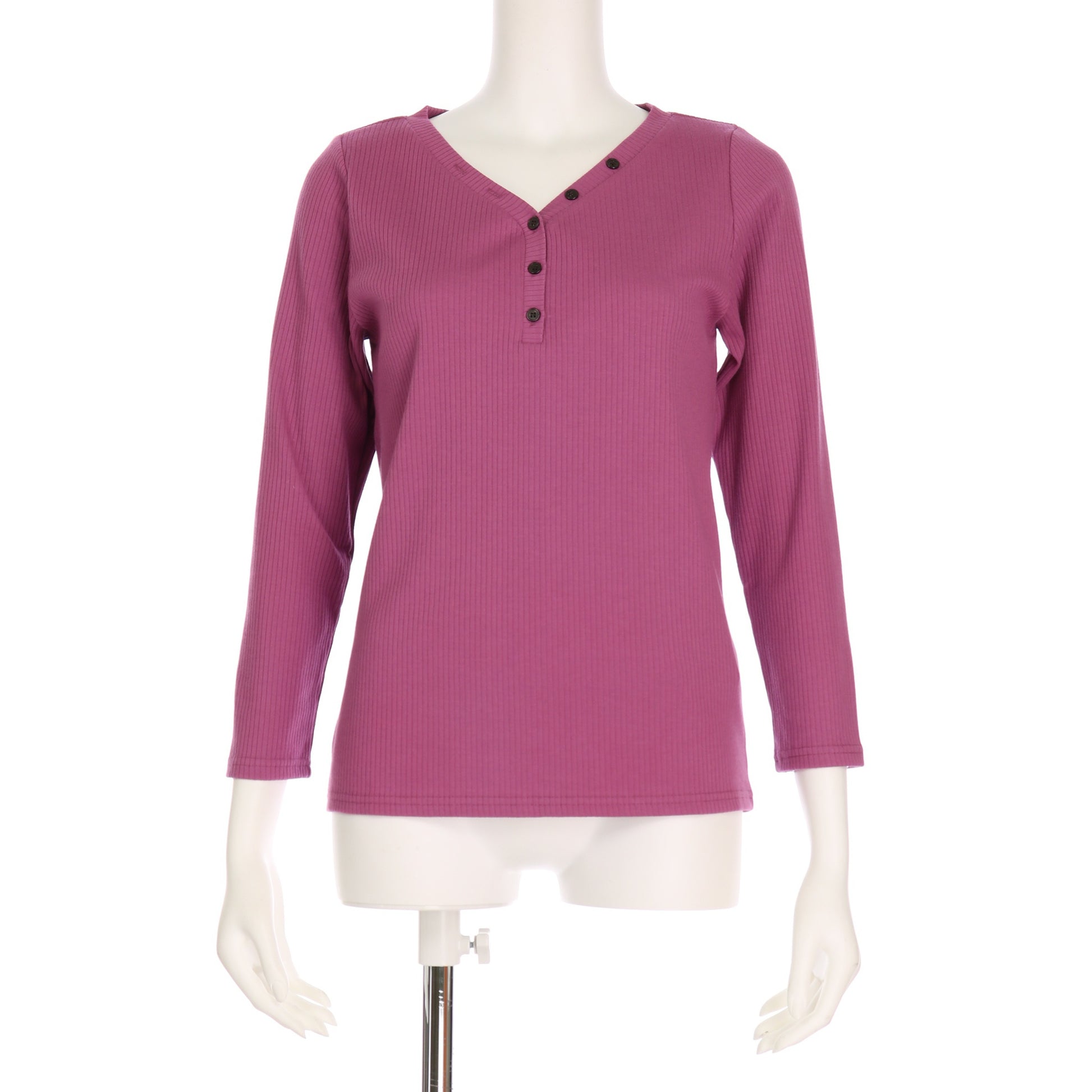 Vヘンリーネックのリブカットソー。サーキュラースカートと合わせて華やかに見せたり、テーパードパンツと合わせてすらっと着こなすのもおすすめです◎