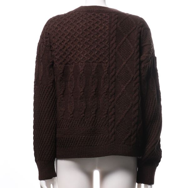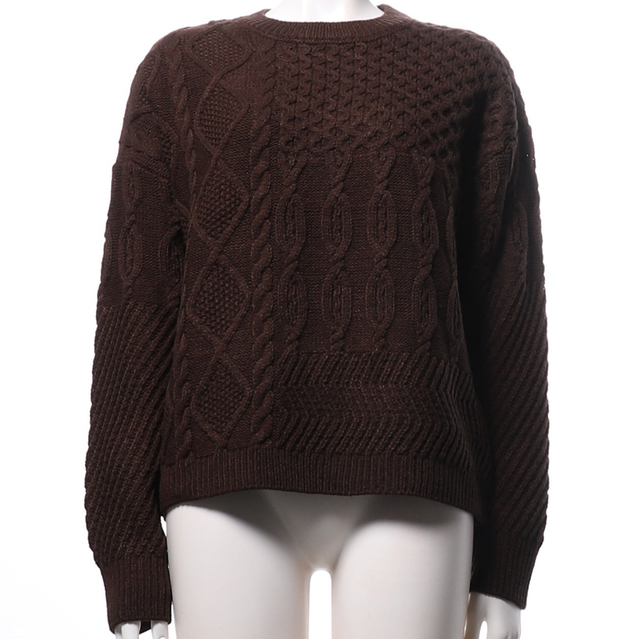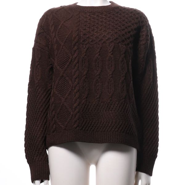 デザイン編みニットは、ワイドパンツを合わせてラフな着こなしに、プリーツスカートを合わせてレディライクな着こなしもいいですね。