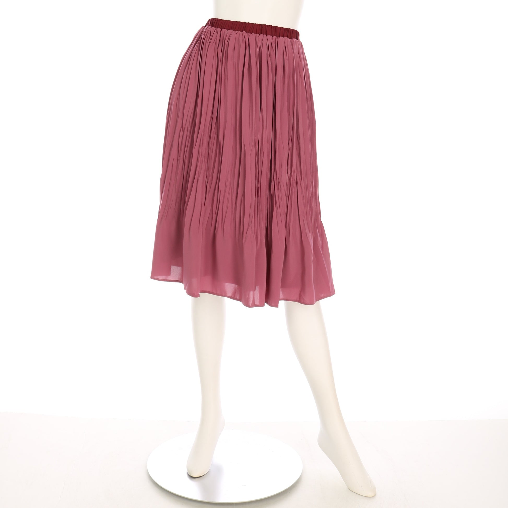 裾消しプリーツスカート。シフォンブラウスをウェストインしてフェミニンスタイルに、ドルマンスリーブのニットを合わせて大人なルーズスタイルも素敵です。