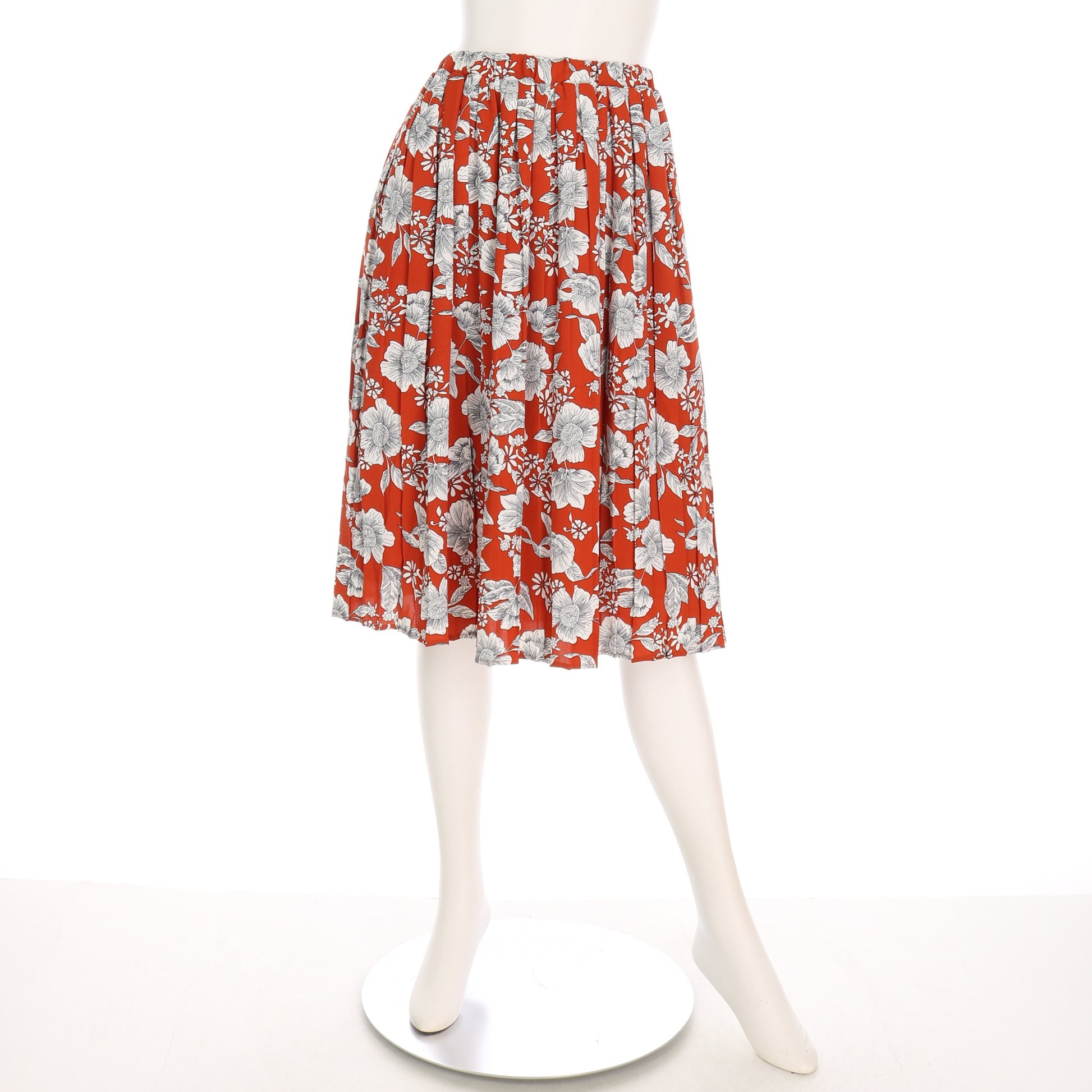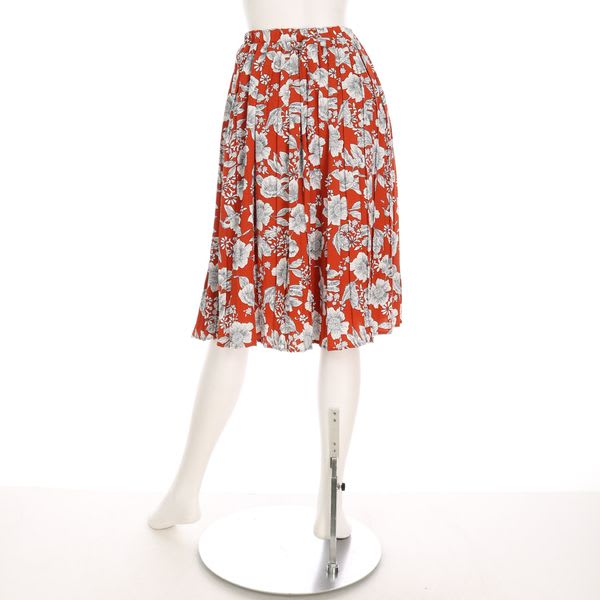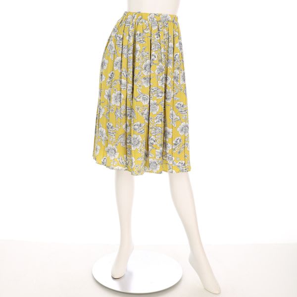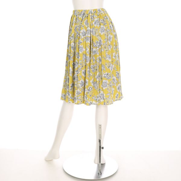フラワープリントのプリーツフレアスカート。シフォンブラウスと合わせて女性らしい着こなしに、スクエアネックなどの胸元が広いカットソーを合わせて休日スタイルも◎