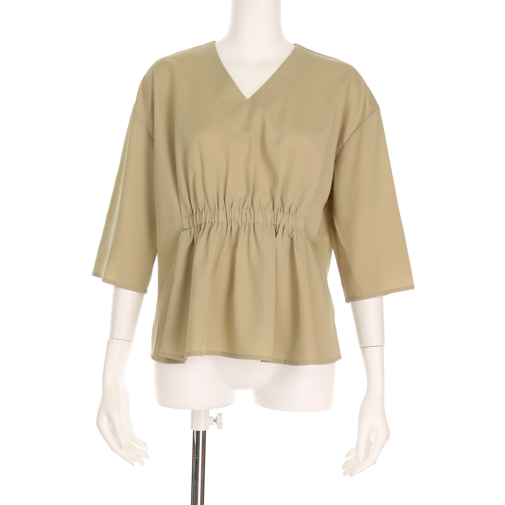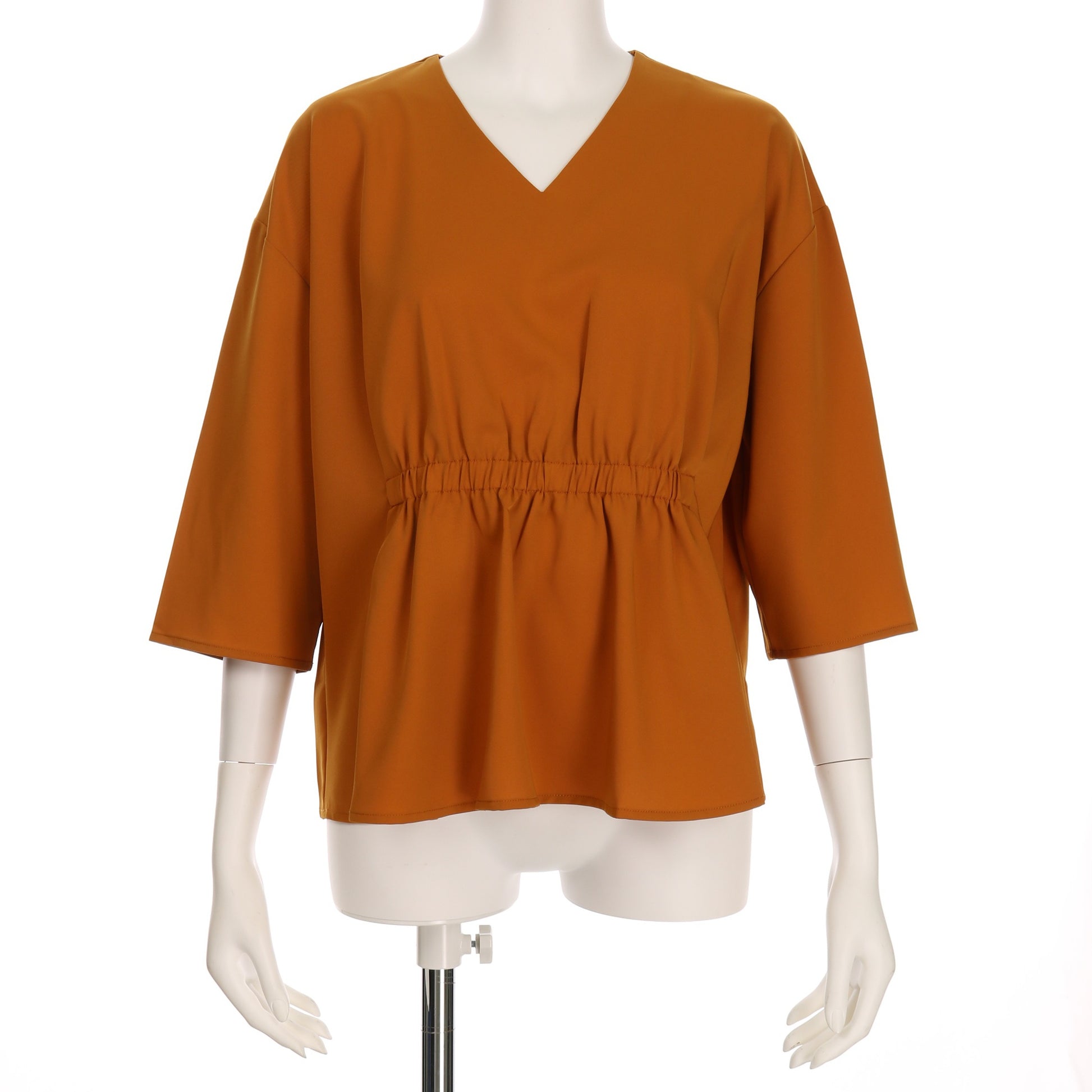 ウエストがシャーリングデザインのvネックブラウス。タイトスカートを合わせてきれいめスタイルに、スキニーパンツを合わせてメリハリのある大人なカジュアルコーディネートも素敵です。