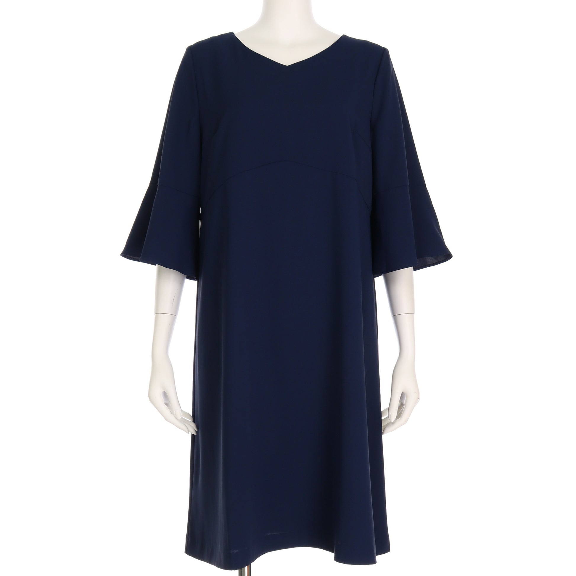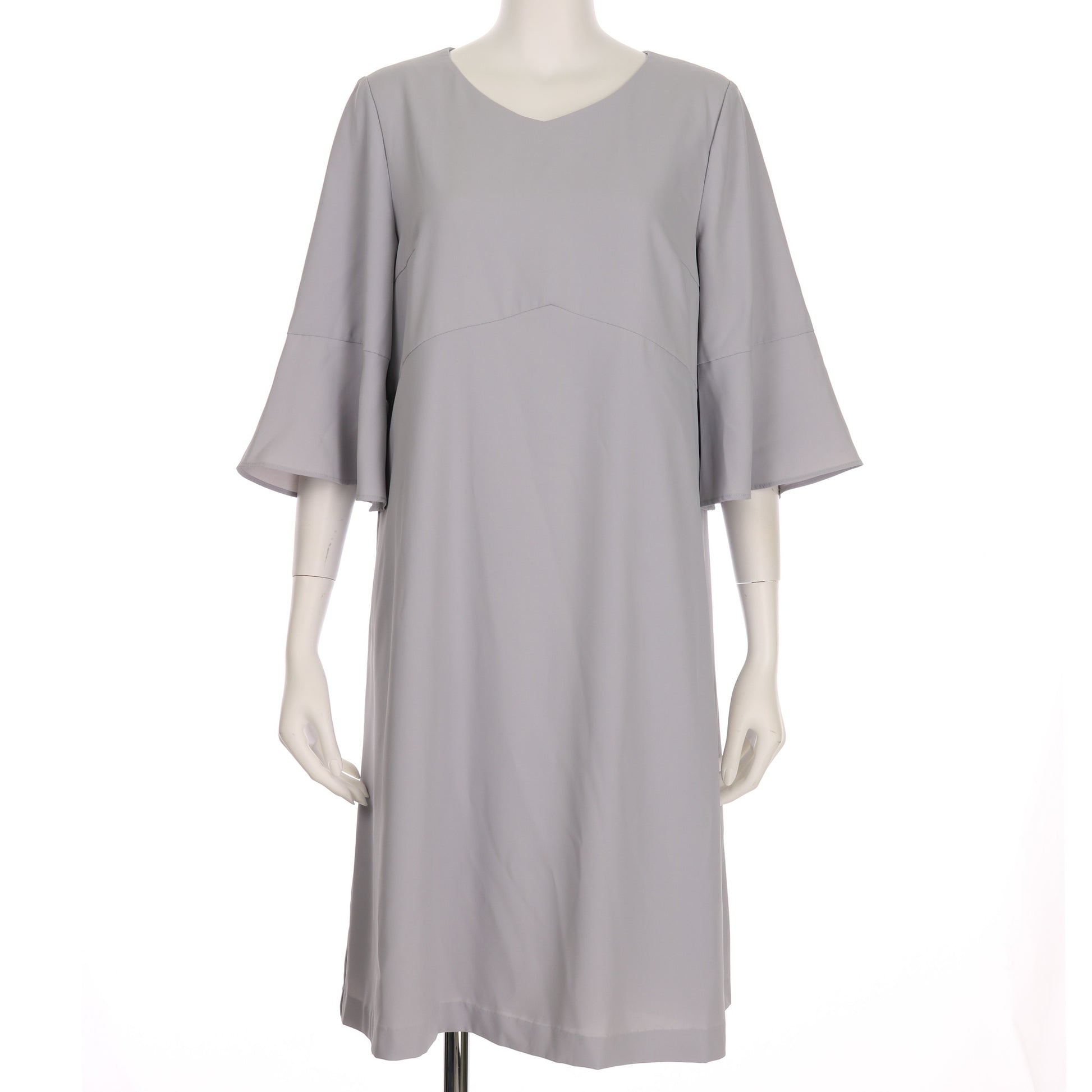 袖のフレアが女性らしい印象のワンピース。首元にスカーフやロングネックレスなどアイテムを合わせて上品に仕上げるのもいいですね。