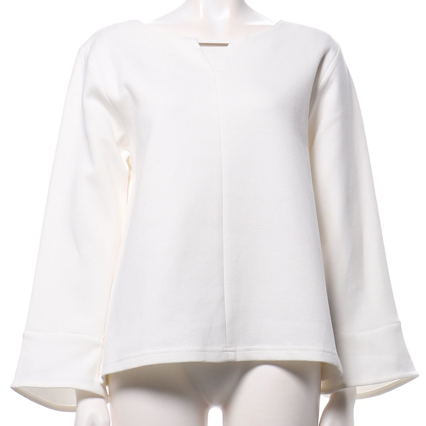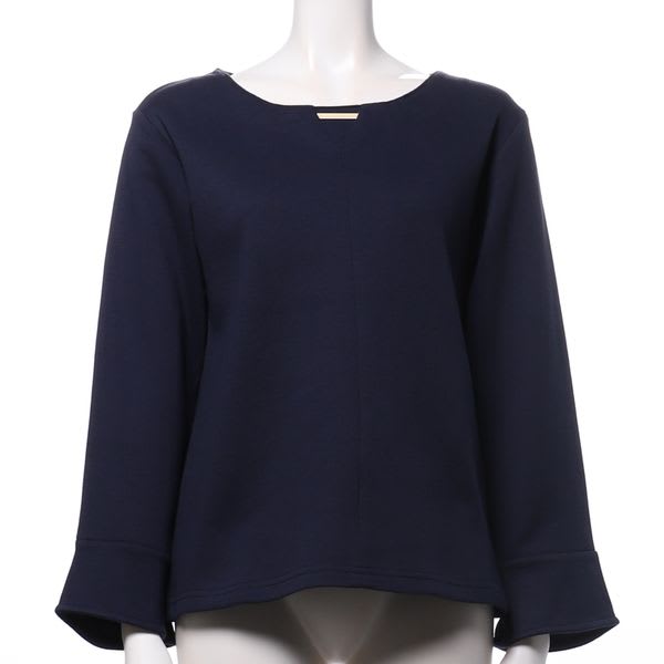 メタルプレート付きワイドスリーブカットソーです。テーパードパンツとフラットパンプスを合わせてキレイめカジュアルな着こなしや、タイトスカートとスウェードパンプスを合わせてレディライクな着こなしも素敵ですよ。
