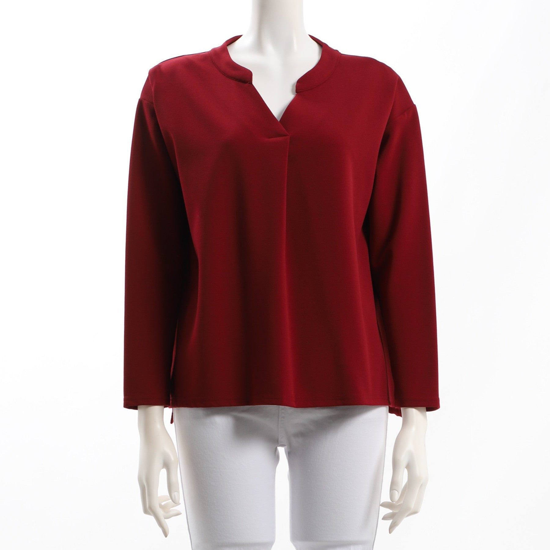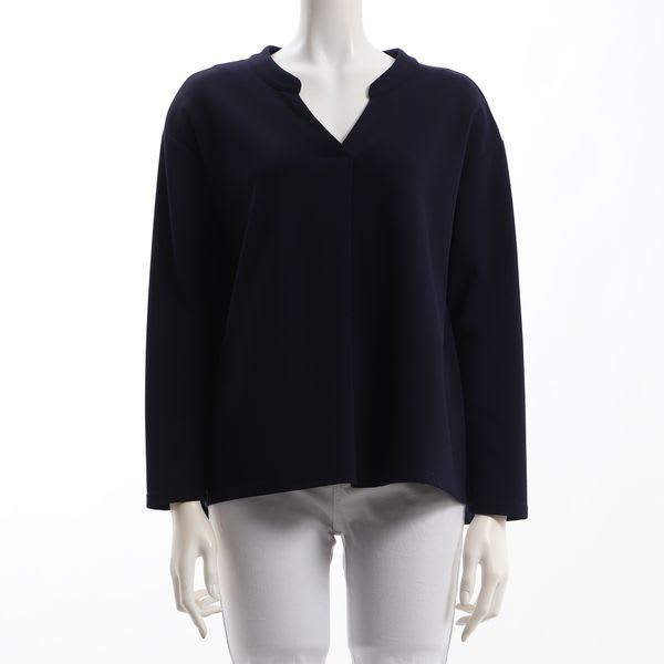 ネックラインやフロントタックがポイントのカットソーです。テーパードパンツとフラットパンプスを合わせてキレイめカジュアルな着こなしや、タイトスカートとヒールパンプスを合わせて女性らしい着こなしも素敵ですよ。