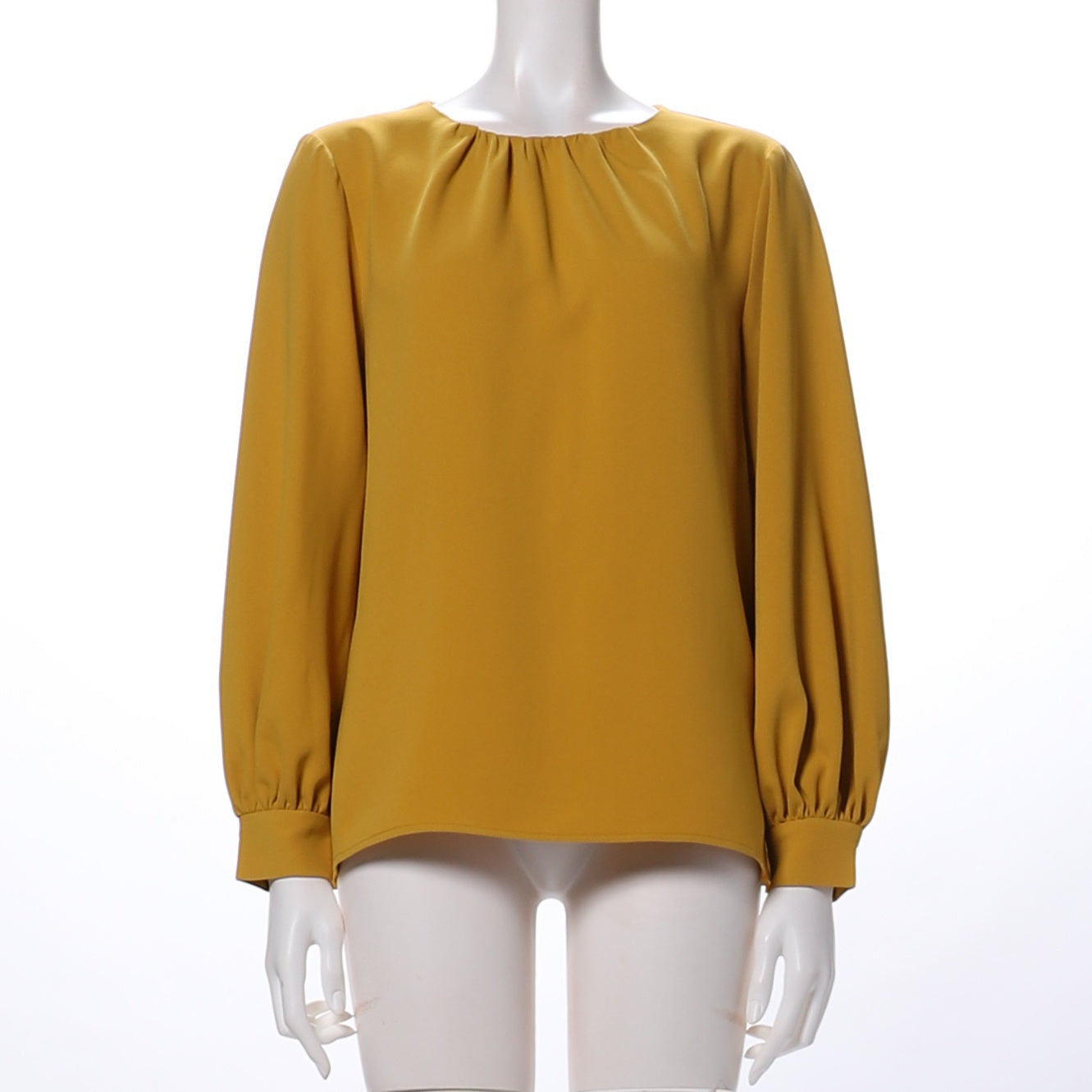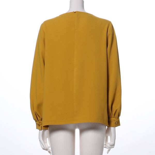 ネックラインに入ったギャザーがポイントのブラウス。 落ち感のあるフレアスカートと合わせてレディライクに、テーパードパンツですっきりと着こなしても素敵ですよ!