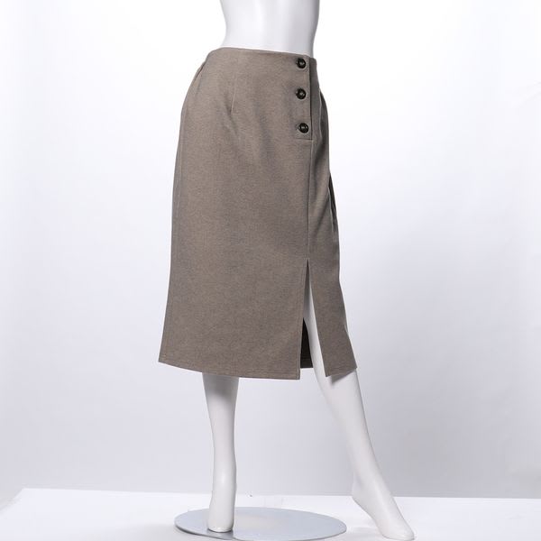 フロントデザインがポイントのセミタイトスカート。後ろウエストがゴム仕様で着やすいのも良いですね。襟付きブラウスを合わせてきちんと感のあるコーディネートに、ボリュームスリーブニットを合わせてカジュアルスタイルもおすすめです。